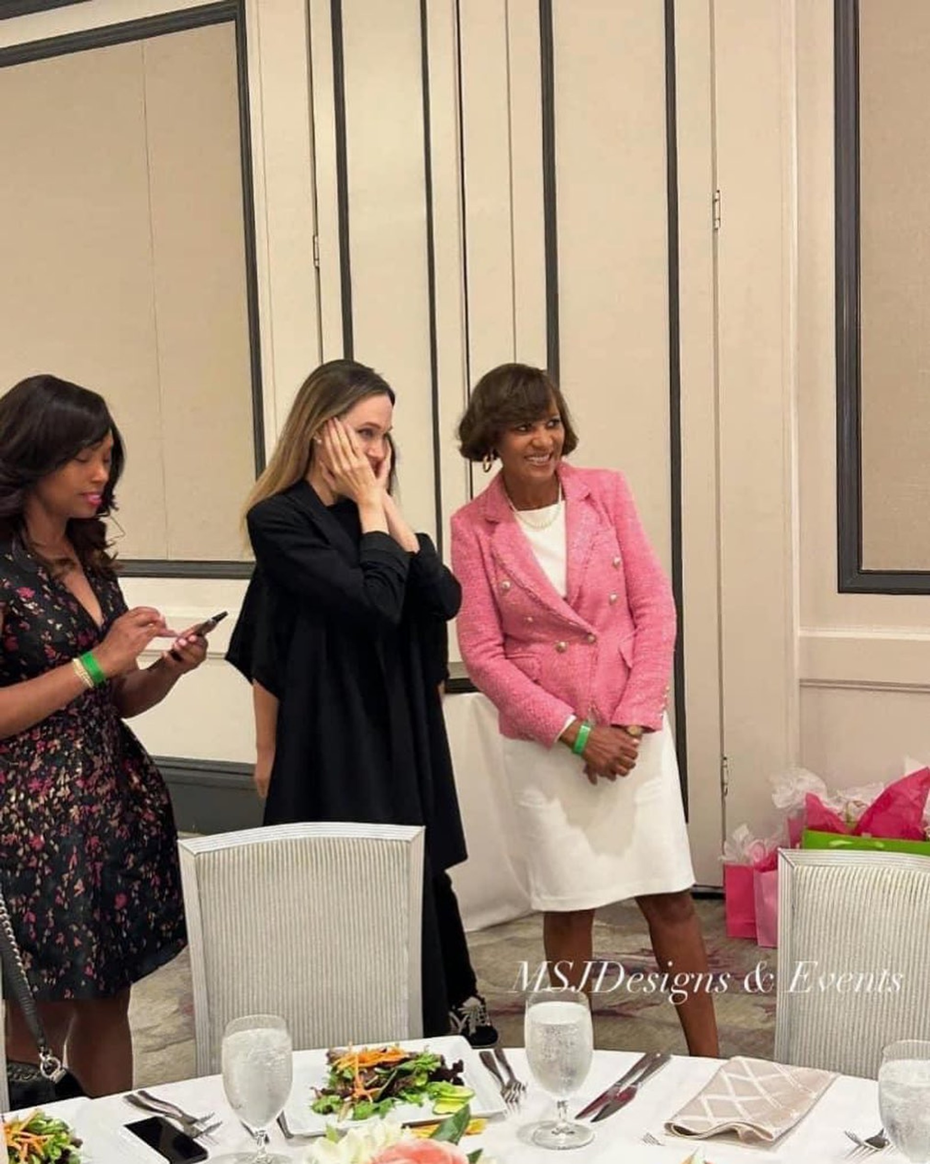 В прошлом году Анджелина Джоли поделилась эмоциональными кадрами прощания: кинозвезда отвела свою старшую дочь в университет. Захара поступила колледж Спелман — заведение с богатой историей, которое стало первым вузом для девушек-афроамериканок. А на днях 18-летняя студентка была принята в женское общество Alpha Kappa Alpha. В честь этого радостного события Анджелина вместе с сыновьями — 19-летним Паксом и 22-летним Мэддоксом — прилетели на праздничную церемонию в Атланту.