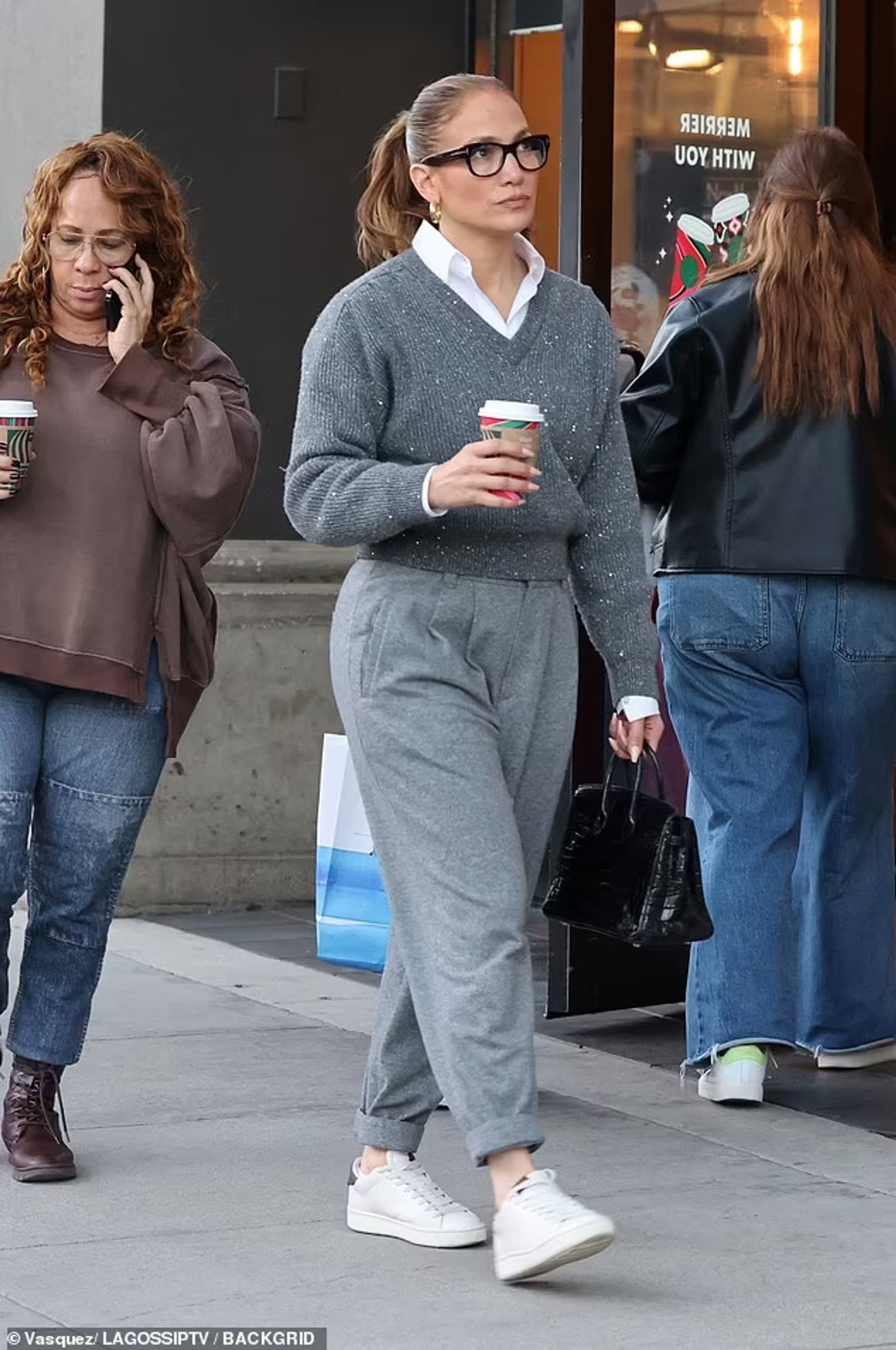 С наступлением холодов певица Дженнифер Лопес решила обновить гардероб: теперь вместо сексуальных и откровенных нарядов она предпочитает что-то в разы скромнее и теплее. На днях она вышла на прогулку в крайне необычном для себя образе — сером вязаном свитере и белой рубашке, а также в брюках в тон. Дополнить лук Джен решила очками и убранной в хвост прической.