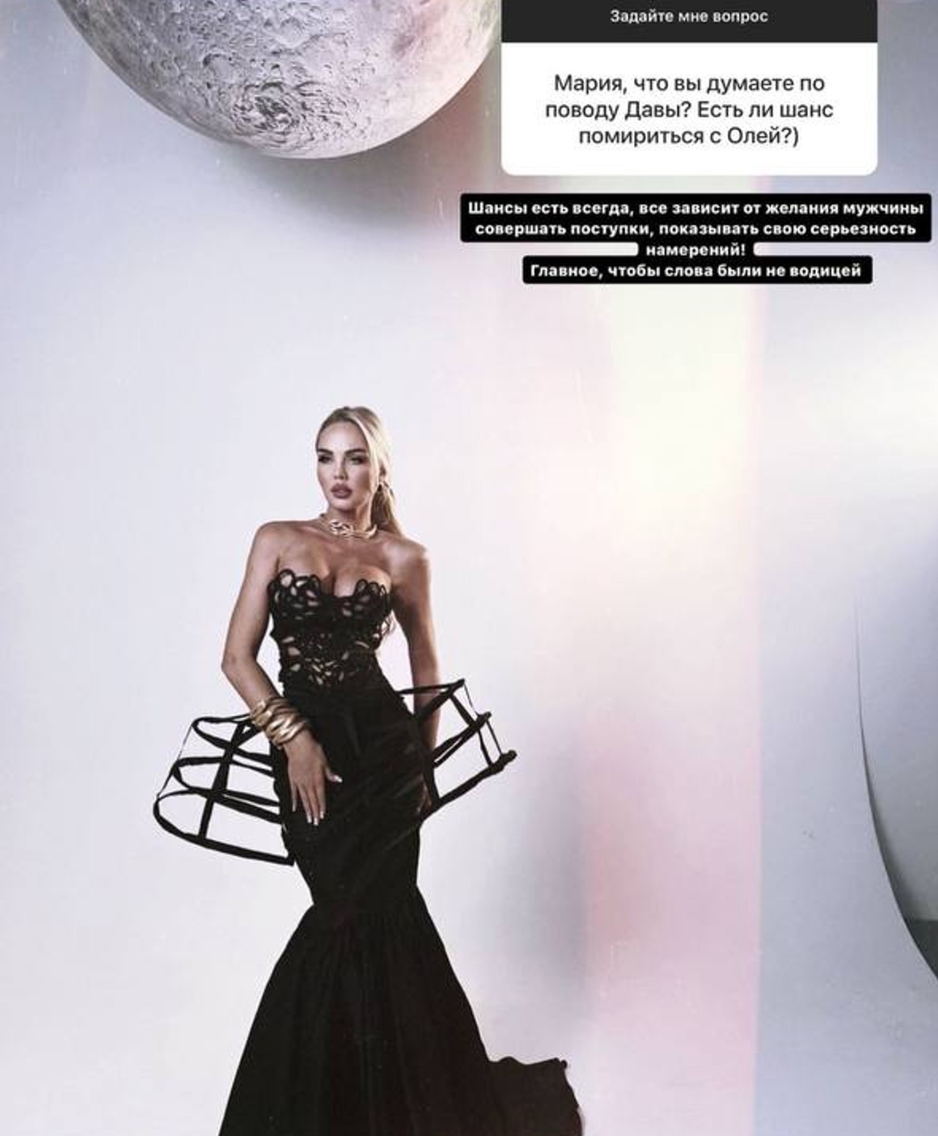 Ей накануне задали вопрос, есть ли хоть какая-то вероятность, что Оля простит бывшего. Ответ Марии удивил: все, говорит она, возможно: «Шансы есть всегда, все зависит от желания мужчины совершать поступки, показывать серьезность намерений». Но без камня в огород бывшего подруги все-таки не обошлось. «Главное, чтобы слова были не водицей», — подытожила Мария, процитировав бессмертный хит Оли.