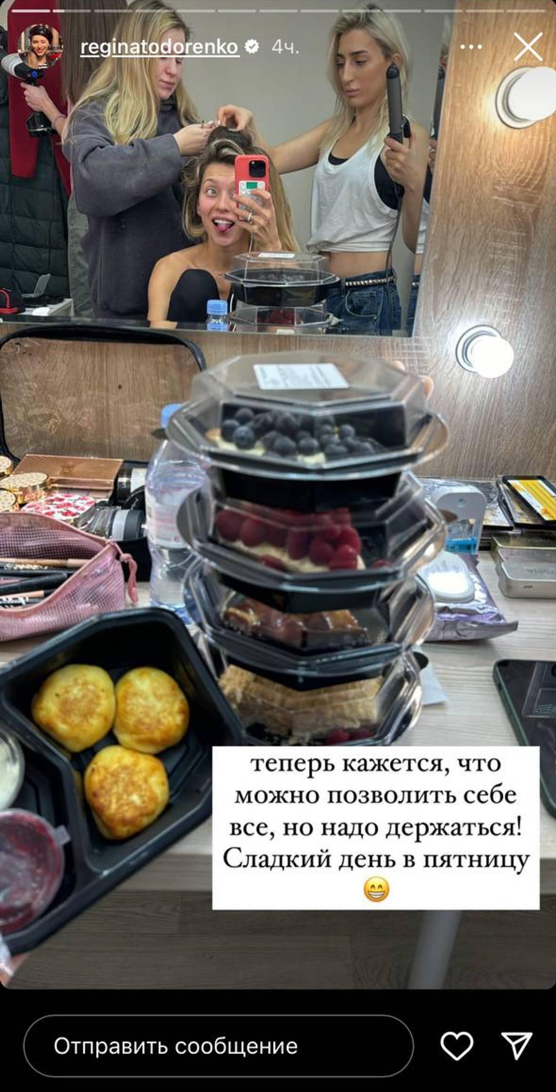 Неожиданно для своих поклонников Регина Тодоренко вышла в сторис с оголенным прессом — и неспроста! Ведущая решила таким образом поделиться радостной новостью: она похудела и пришла к желанному весу в 55 килограммов.