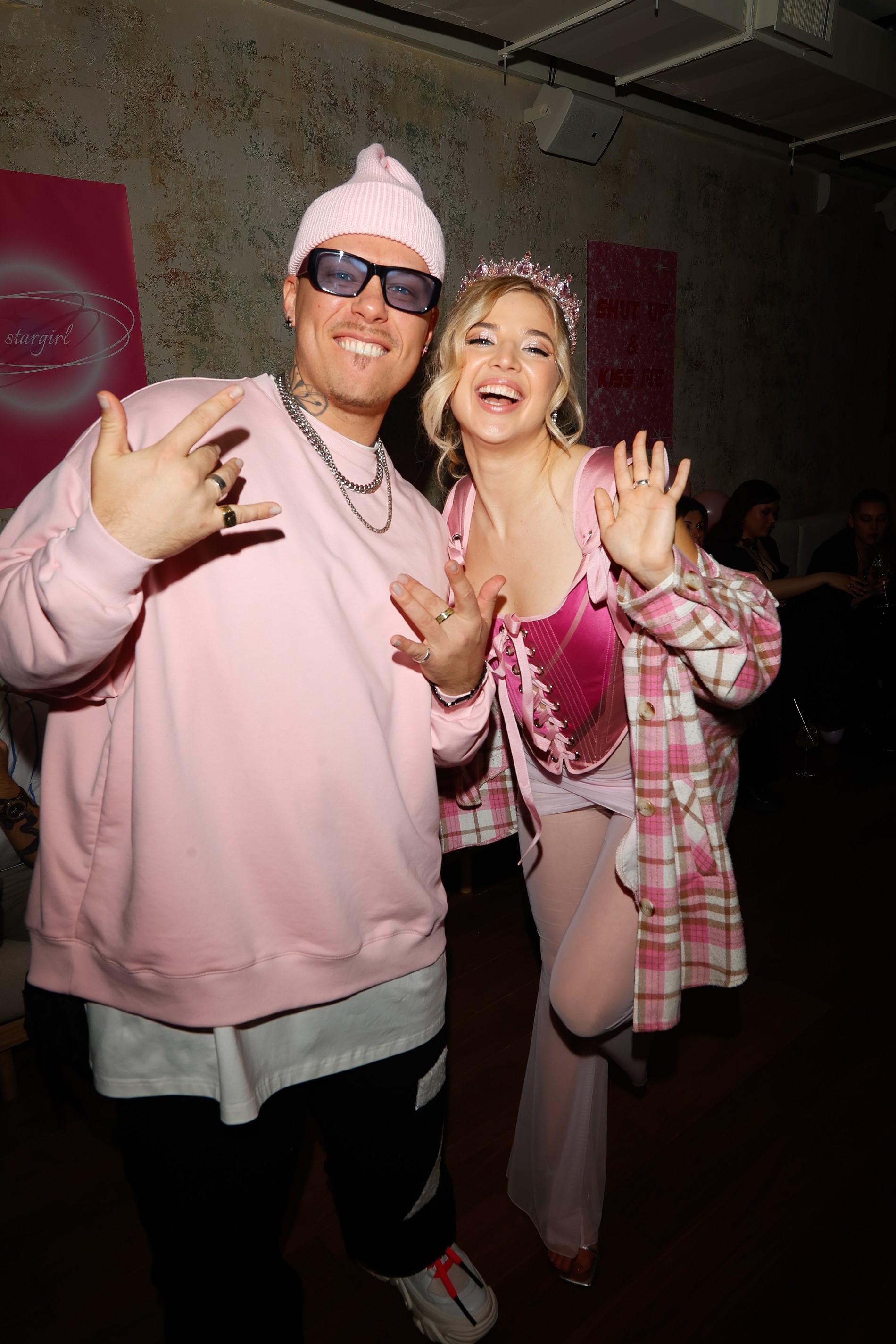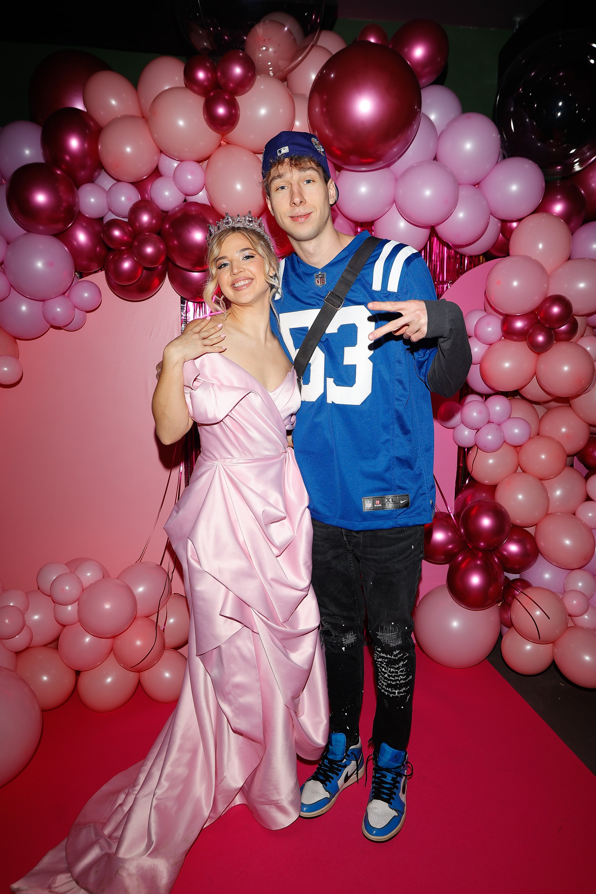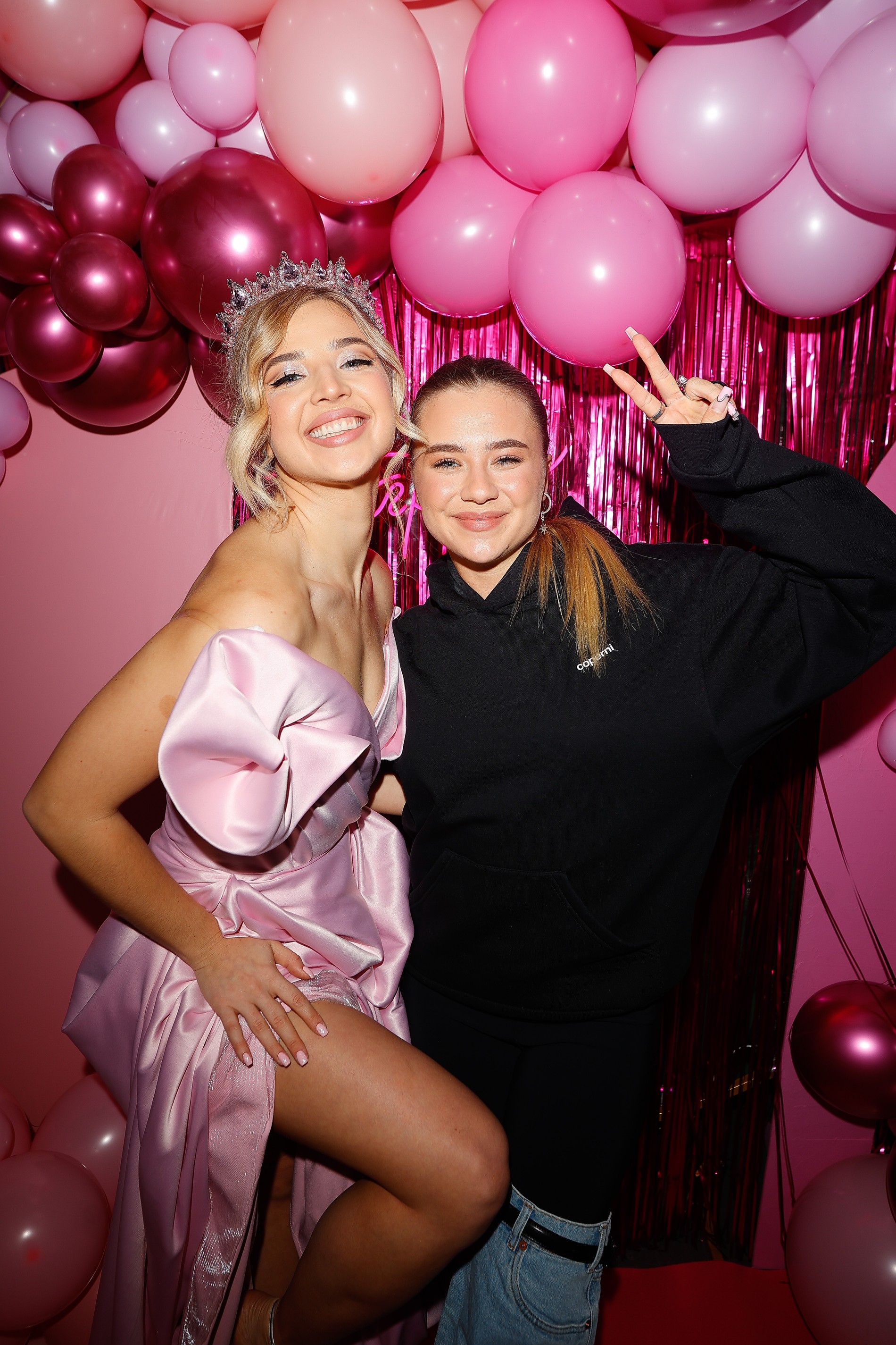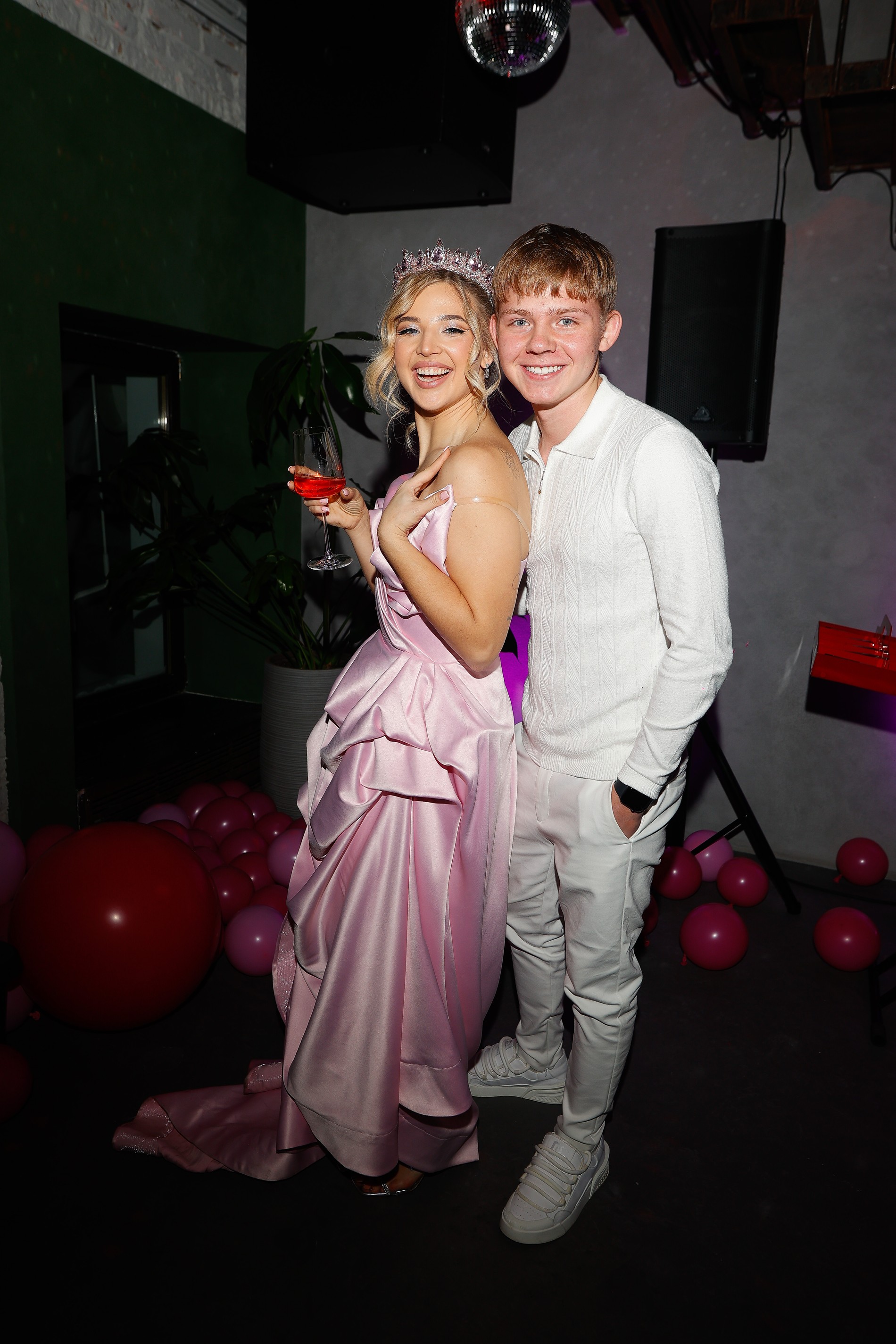 Не можем не отметить шикарные образы именинницы. Она встречала гостей в элегантном нежно-розовом платье и с короной на голове, а позже сменила наряд на более удобный — розовый корсет с прозрачными брюками.