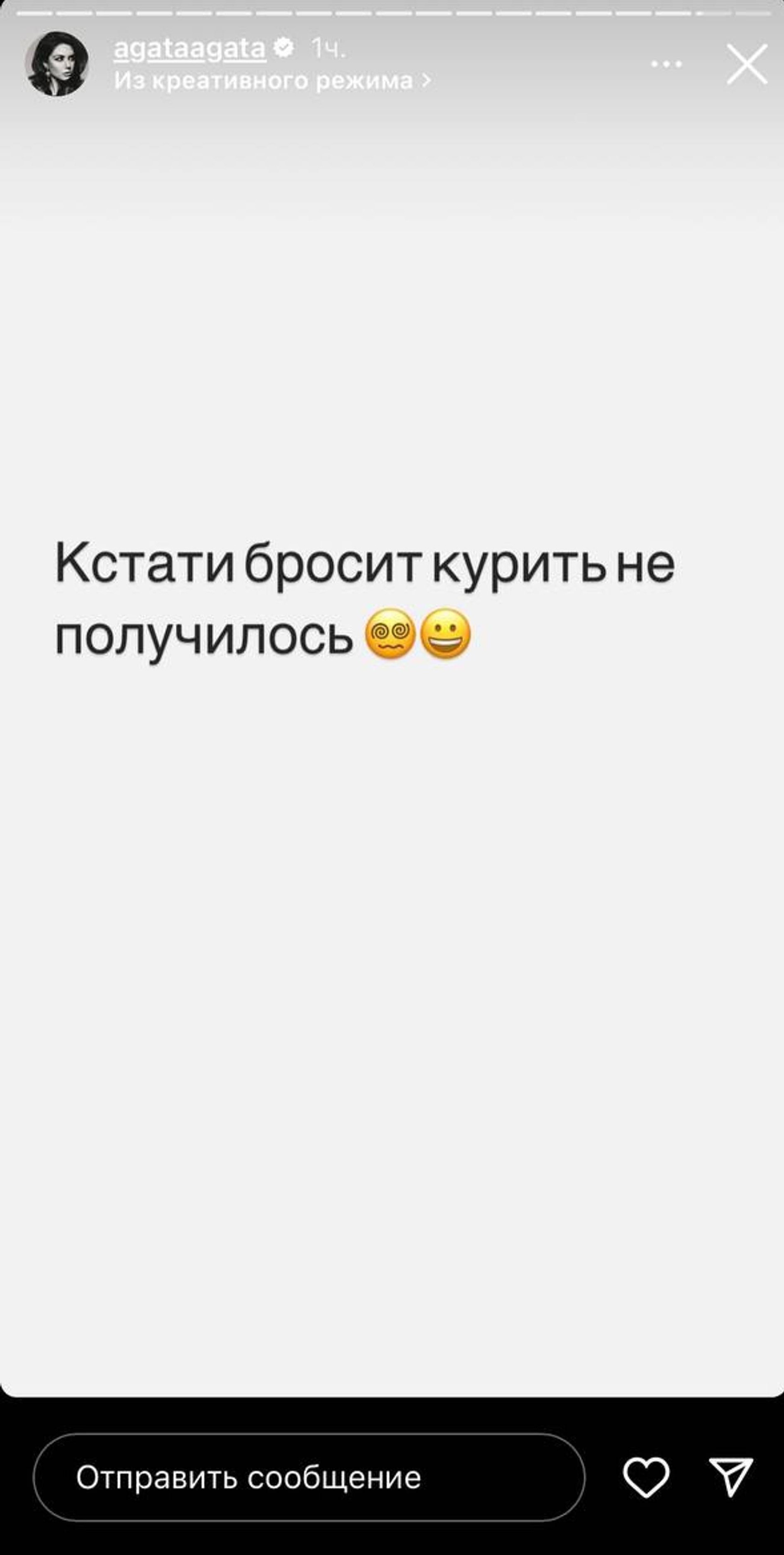 А речь идет о курении. Несмотря на то что Муцениеце — сторонница здорового образа жизни (чего только стоят ее длительные пробежки!) и всячески работает над тем, чтобы сохранить молодой внешний вид, эту злостную привычку искоренить ей не удалось. «Кстати, бросить курить не получилось», — пожаловалась она подписчикам.