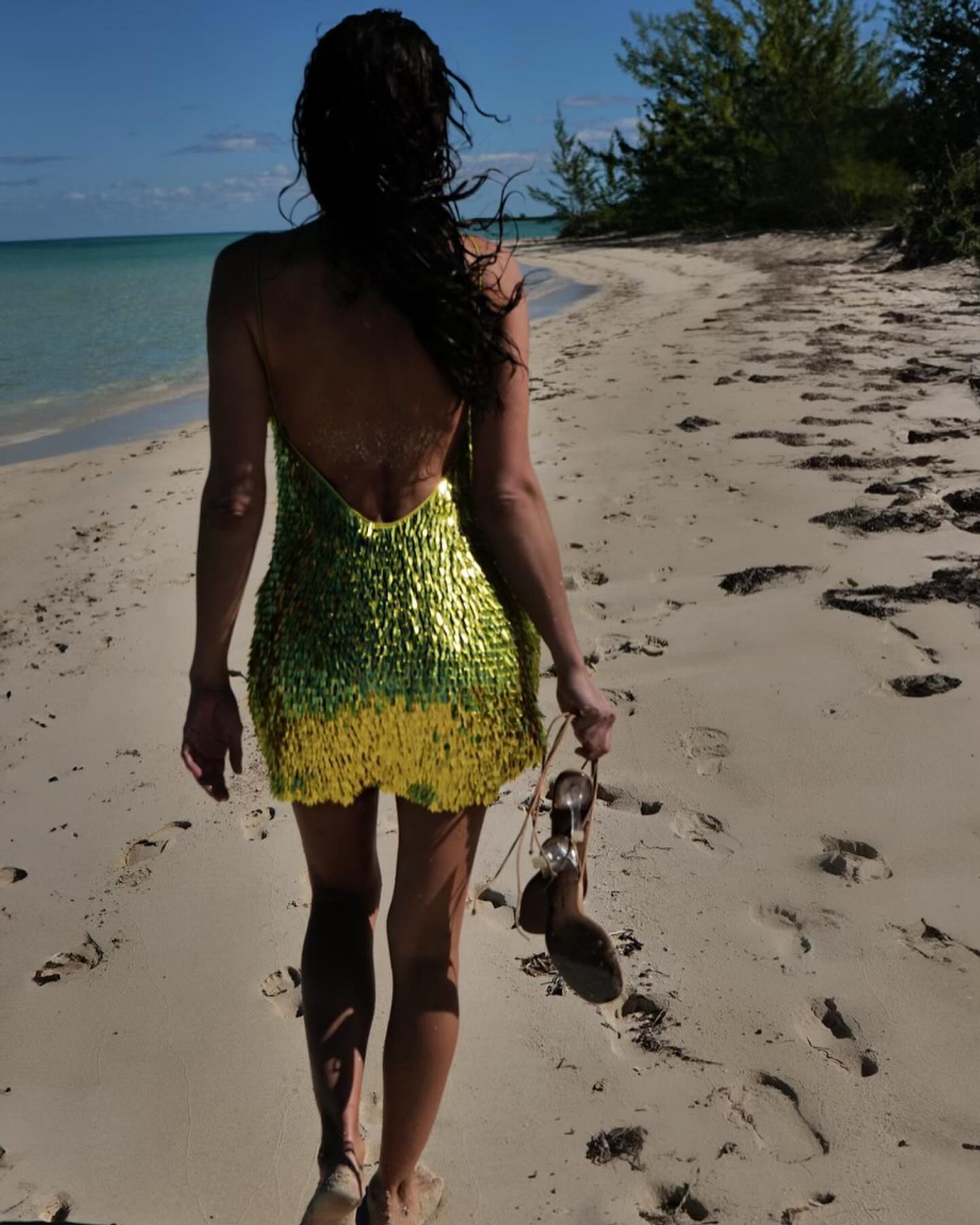Ирина Шейк встретила год Зеленого Деревянного Дракона в чешуйчатом мини-платье
