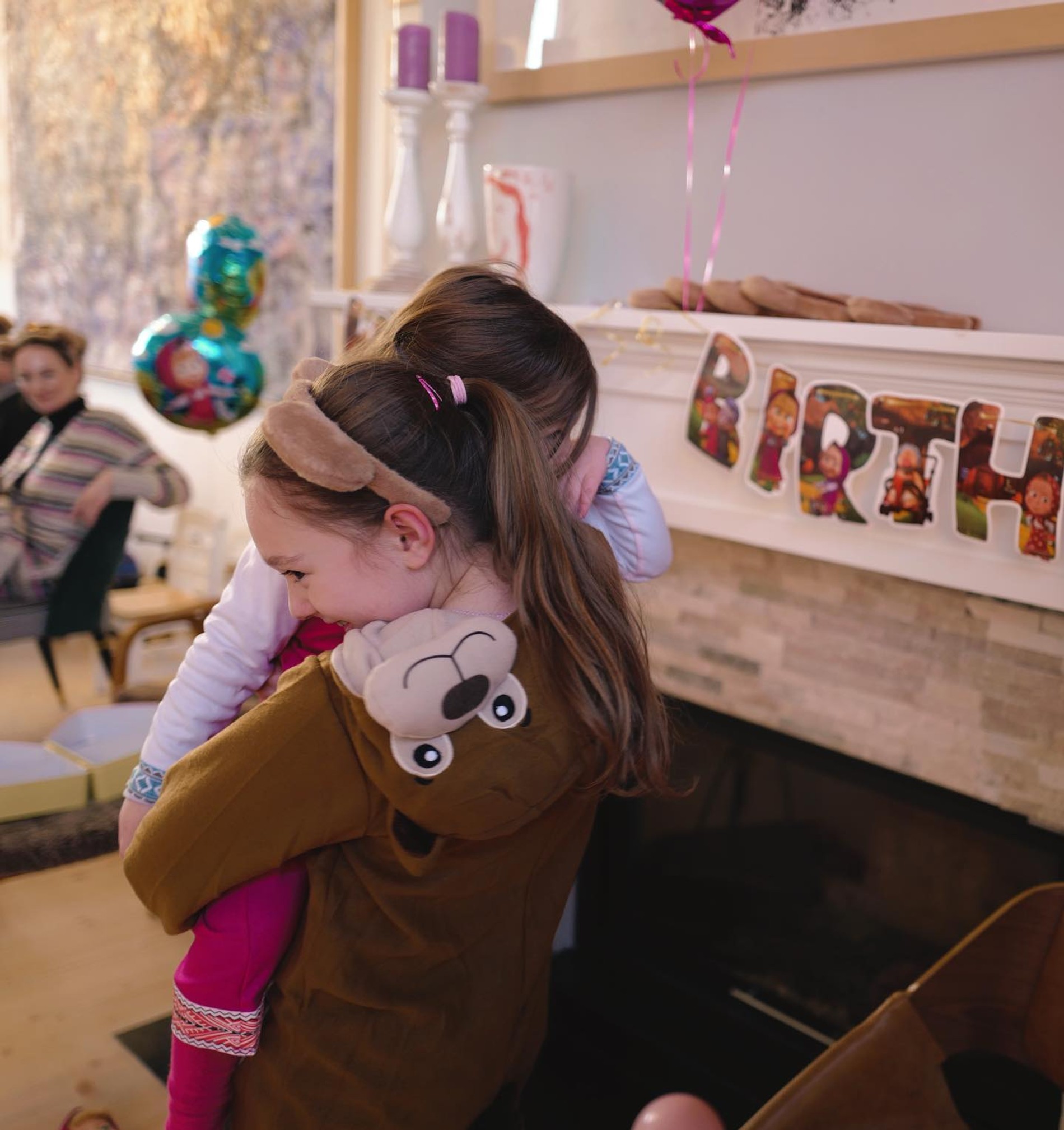 Мерьем и маленькая Лили преобразились в главную героиню мультика, надев розовый костюм и косынки на голову в тон, а дом украсили шариками и плакатами с изображением Маши и Медведя. Кстати, роль Медведя исполнила старшая дочка Узерли Лара, а остальным присутствовавшим на празднике достались ободки с медвежьими ушками.