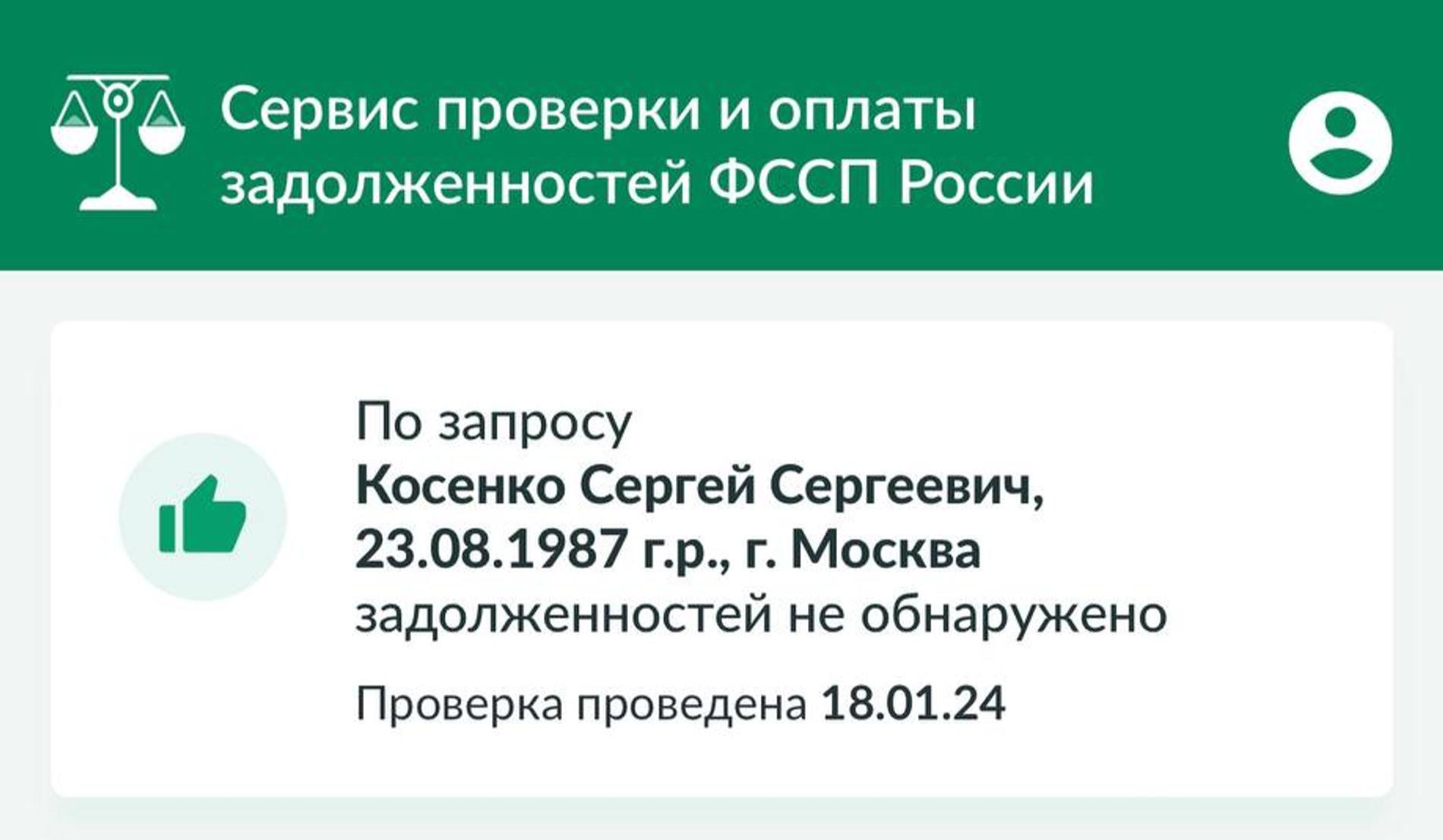 «Официальное опровержение! Сегодня появилась информация о том, что судебные приставы якобы разыскивают Сергея Косенко из-за долгов и чуть ли уже не заблокировали счета. Эта информация не соответствует действительности (скрин с сайта ФССП прилагаю). Никаких долгов нет, и никто Сергея Косенко не разыскивает. Желающие могут убедиться в этом, посетив официальный сайт Службы судебных приставов»