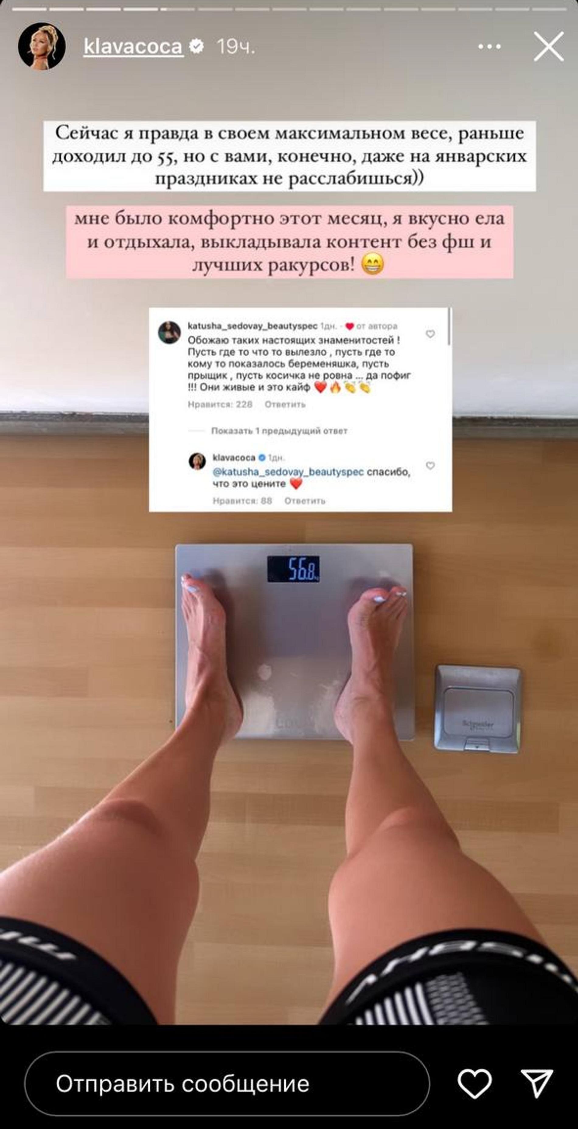 Клава Кока раскрыла свой вес на фоне слухов о беременности и обратилась к поклонникам с неожиданной просьбой