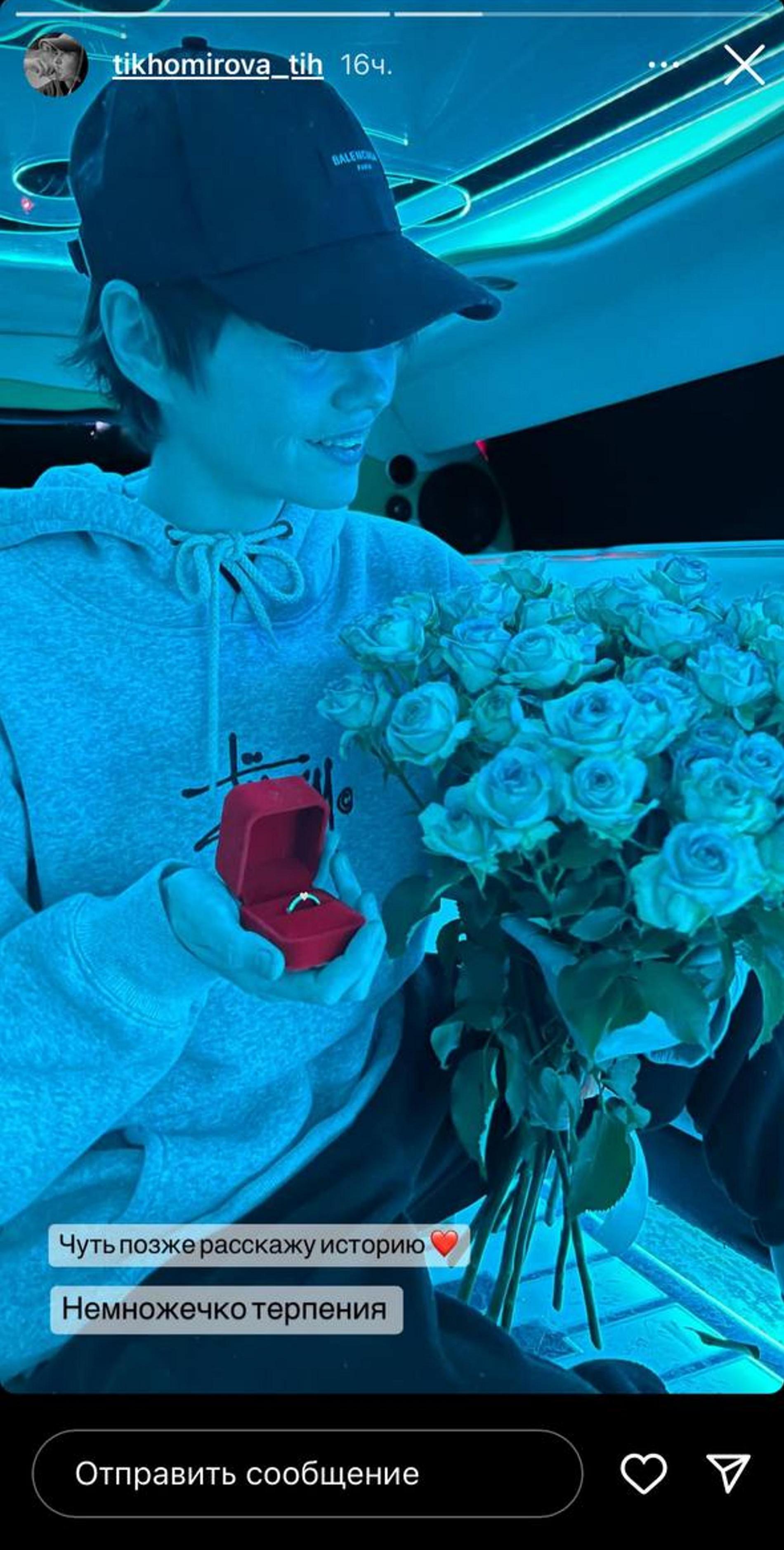 Никаких подробностей о том, как был задан самый главный вопрос, Тихомирова пока не раскрыла, как, собственно, и личность жениха. Но, судя по настроению и радостной улыбке в сторис, экс-«пацанка» ответила заветное «да».