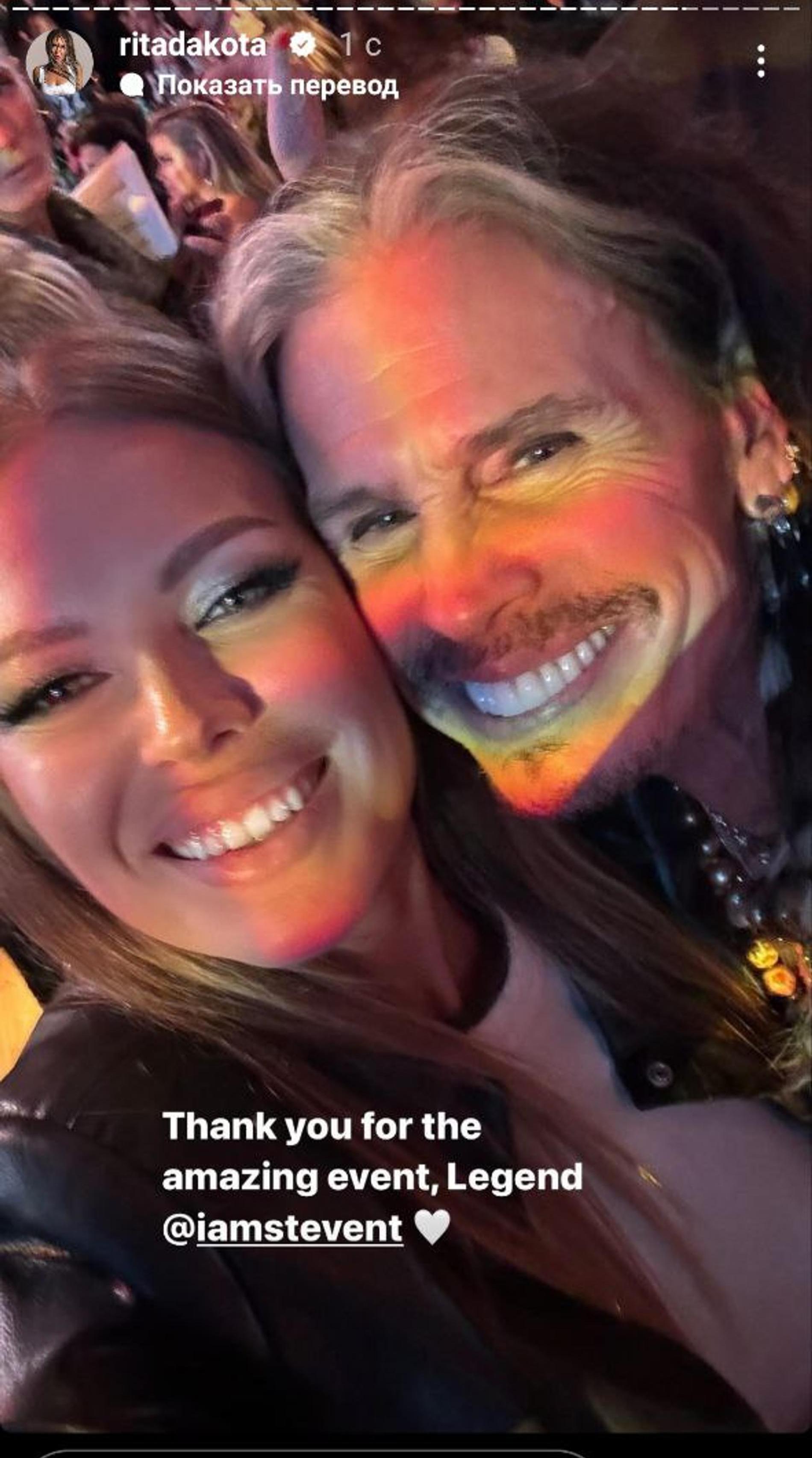 Ну и, конечно, не обошлось без снимка с хозяином вечера: лидером Aerosmith Стивеном Тайлером. «Спасибо за удивительное мероприятие, легенда!» — лаконично подписала снимок с музыкантом Рита.
