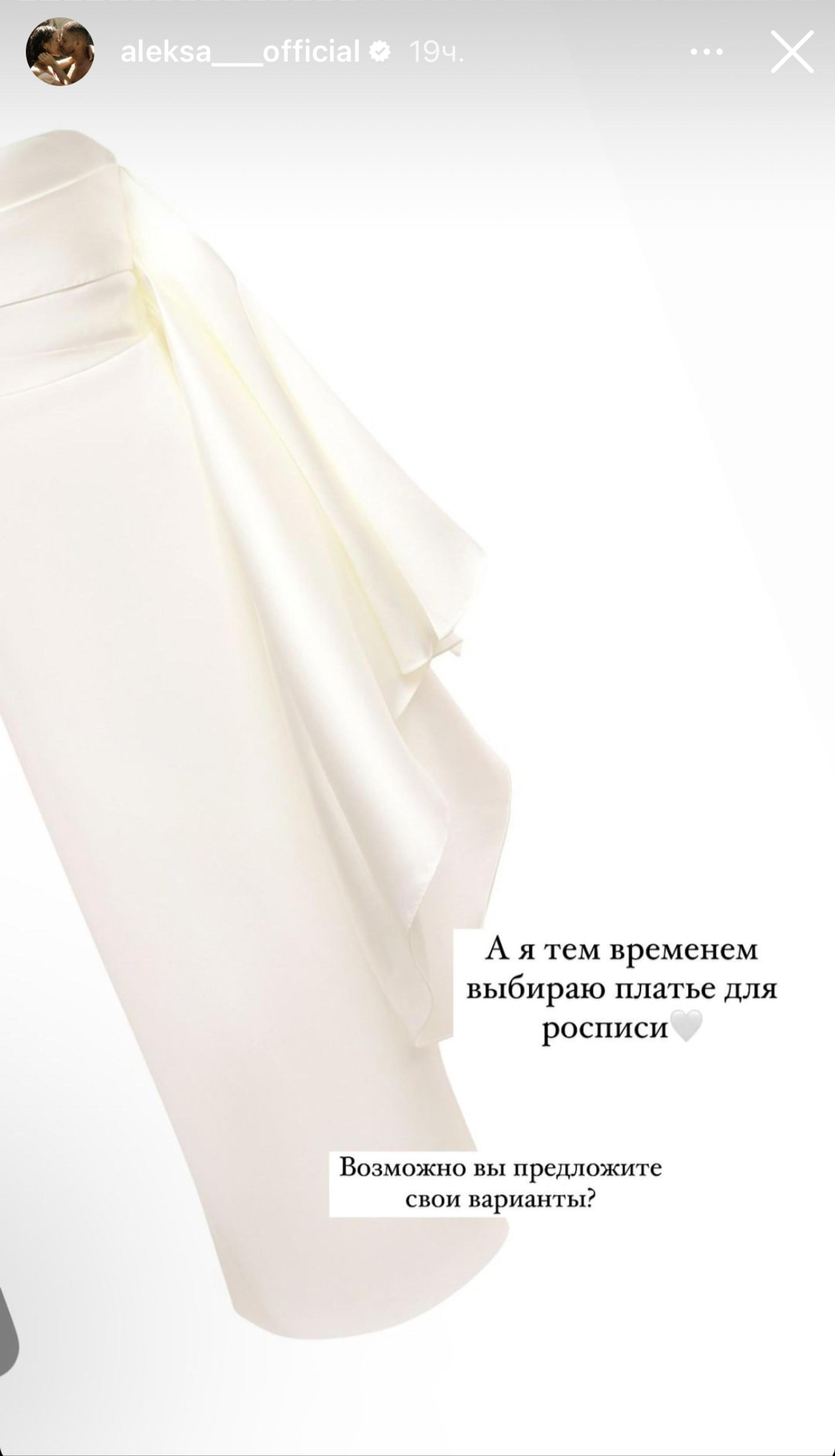 О скорой свадьбе с фитнес-тренером Вячеславом Дайчевым певица Алекса сообщала еще осенью 2020-го — и вот, похоже, спустя три с половиной года и одного общего ребенка этот день наконец наступит. Среди будничных сторис выпускница «Фабрики звезд» между делом показала белое платье и попросила у подписчиков совета в выборе наряда для столь важного дня. «А я тем временем выбираю платье для росписи. Мы собираемся пожениться. До этого не доходили руки и ноги», — призналась Алекса.