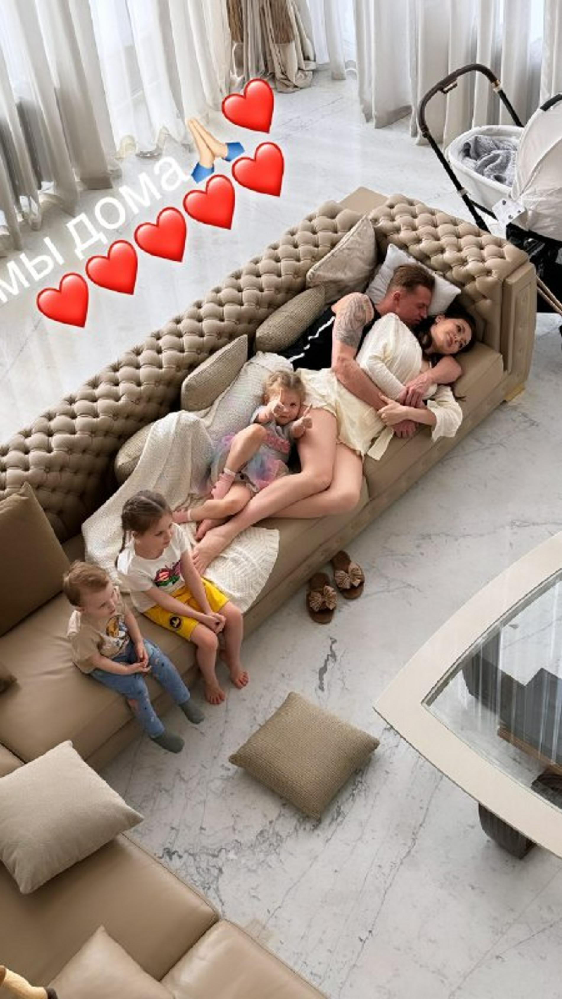 Большая и дружная семья Тарасовых-Костенко снова вместе! Напомним, 15 февраля модель подарила супругу еще одного наследника — теперь у пары две дочери и два сына. А сегодня футболист вместе со старшими детьми забрал любимую с малышом из роддома.