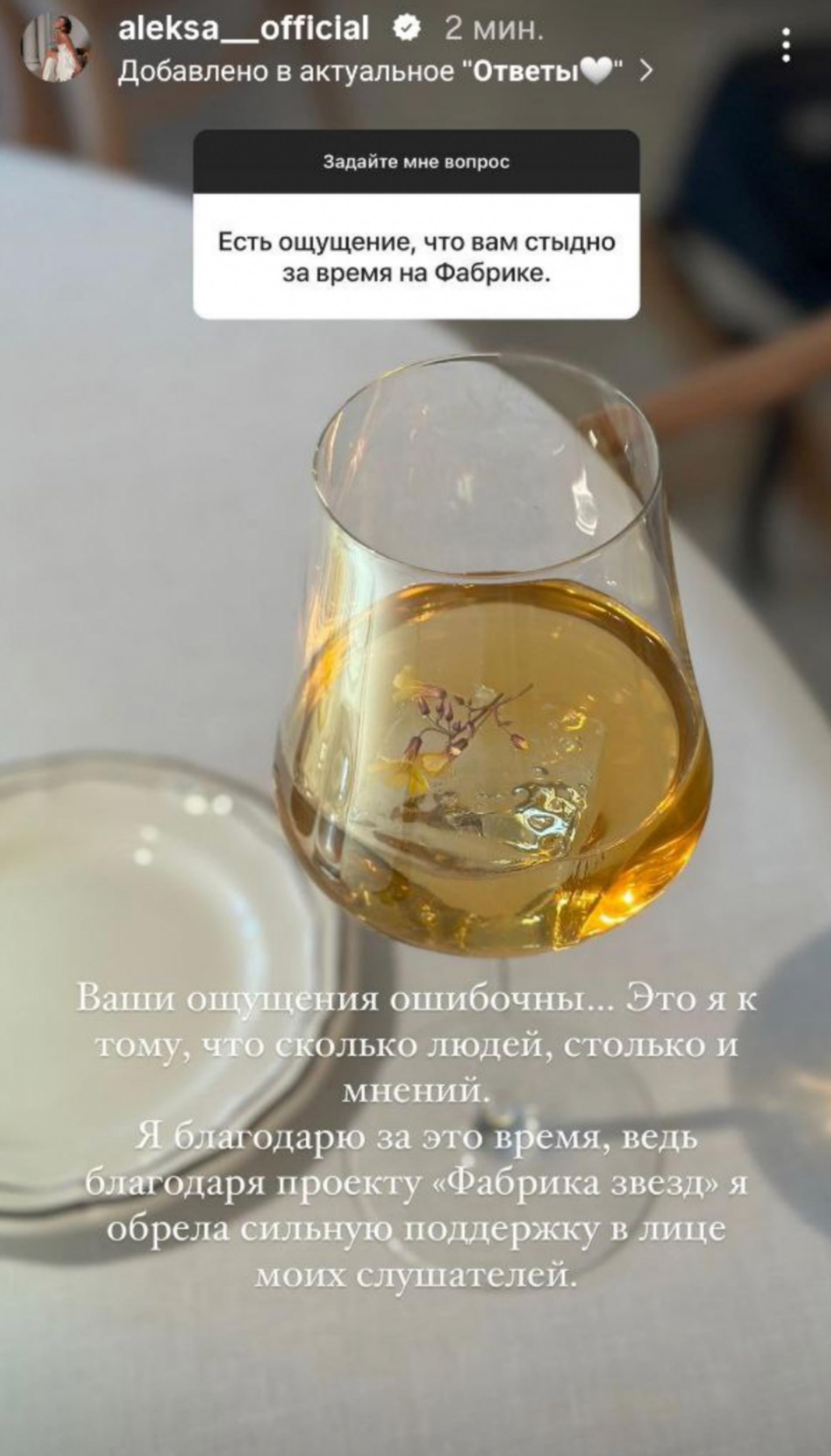 Легендарная «Фабрика звезд» принесла Алексе популярность, однако певица не любит вспоминать о времени, проведенном на проекте. В соцсетях она нарочито говорит, что не общается ни с кем из бывших фабрикантов. А еще как-то заявила, что точно не стала бы давать интервью Яне Чуриковой для ее проекта о «Фабрике звезд», в котором побывали, кажется, уже все участники. Накануне подписчики в запрещенной сети прямо спросили у Алексы, правдиво ли ощущение, что ей стыдно за то, что было в звездном доме?