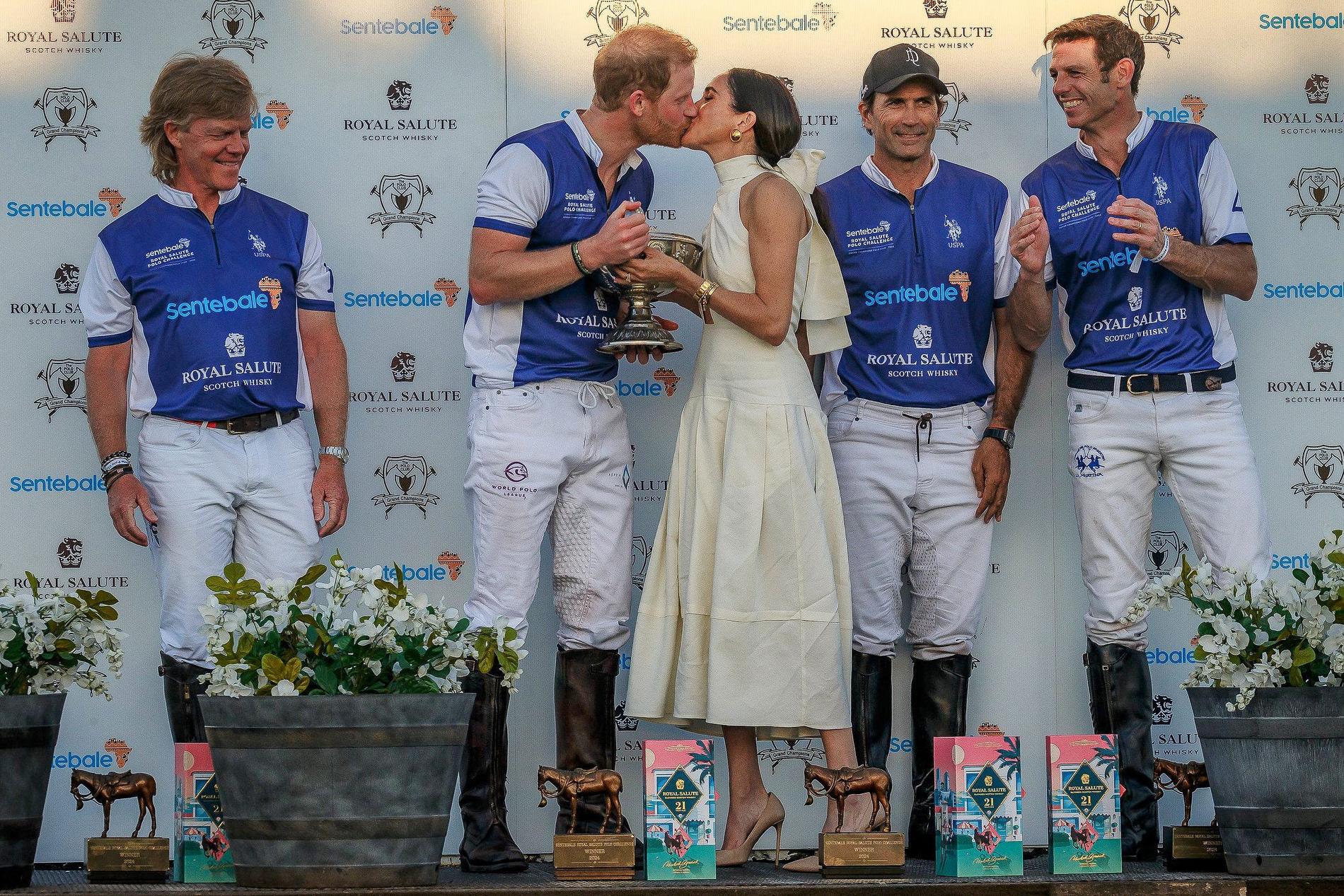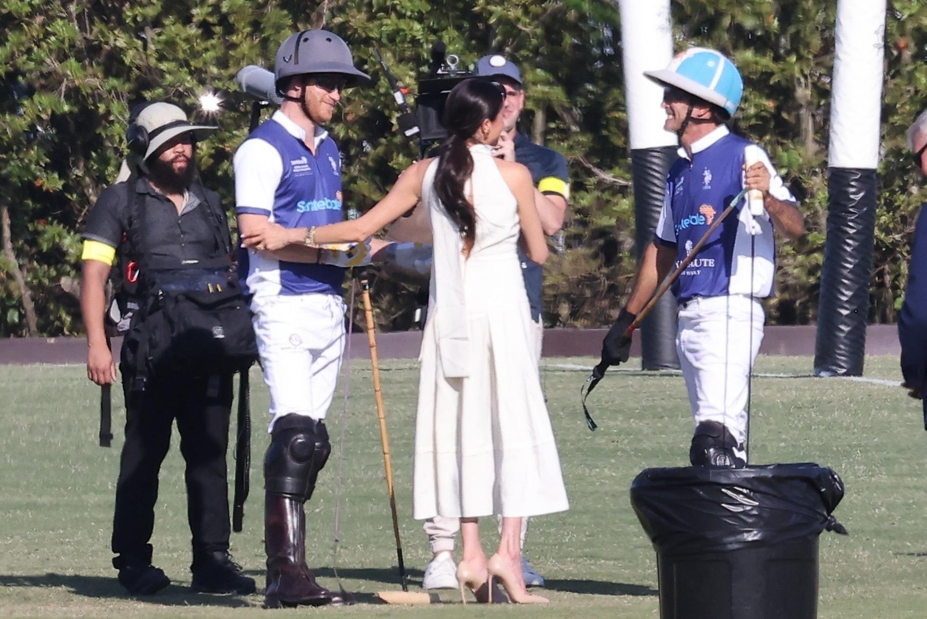 Назло своим многочисленным хейтерам Меган Маркл и Гарри решили выдать порцию образцово-показательной романтики. В эту пятницу принц принял участие в благотворительном матче по конному поло в Майами: команда королевского отпрыска, конечно, же, выиграла, а его супруга вручила мужу трофей... и страстный поцелуй впридачу.