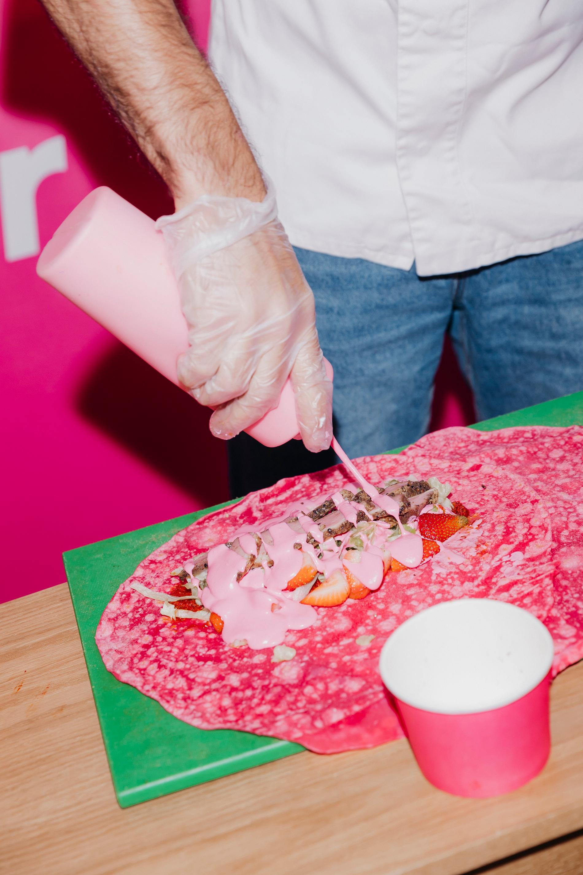 Блогеры Паша Дворецкий и Артем Белов особенно отметили розовую шаурму. И они были не одиноки в своем выборе: блюдо с необычной начинкой, в состав которой входит клубника и индейка, понравилось многим гостям. Мини-бургеры также не остались без внимания: Артем отметил, что мясо в них очень сочное.