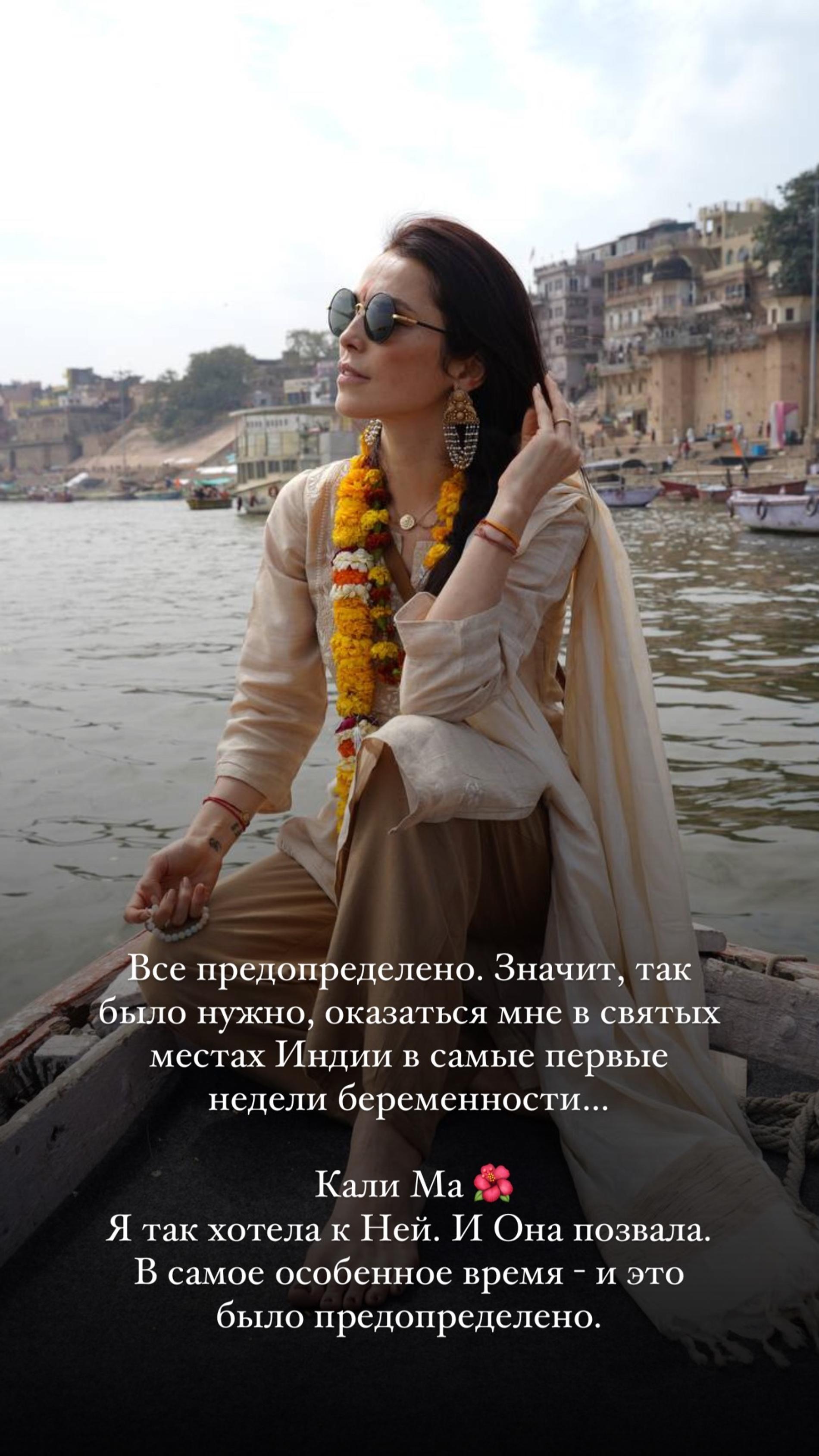 «В Варанаси начался токсикоз… Я так давно мечтала оказаться в этом священном городе, но не в таких обстоятельствах. Меня раздражало все: запахи, звуки, краски… С тех пор я не могу смотреть на индийскую еду. Надеюсь, это скоро пройдет», — рассказала артистка, отметив, что всю поездку она была «цвета огурца», из-за чего некоторые участницы группы догадались о ее положении.