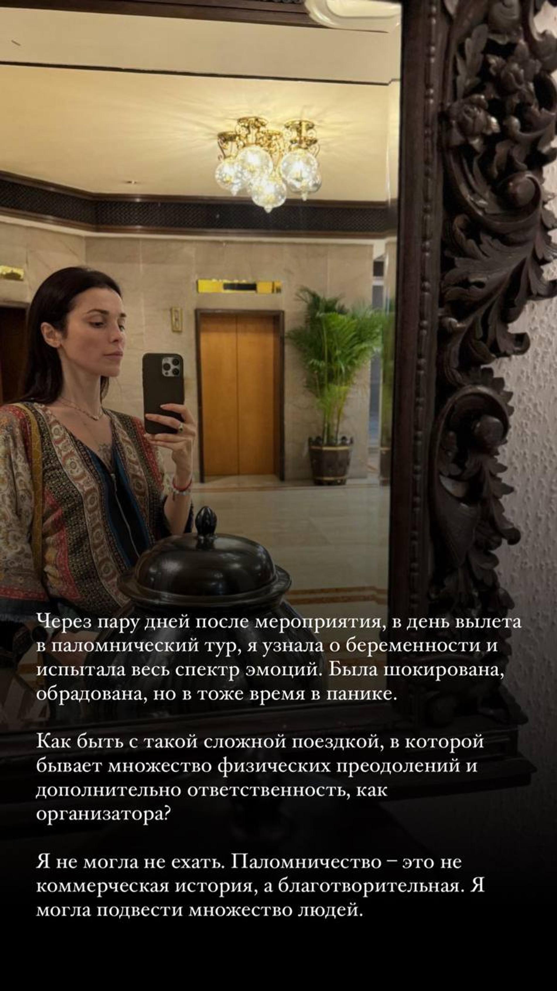 А вот узнала о беременности Сати в самый неподходящий момент — ровно в день вылета в паломнический тур в Индию. По словам певицы, она испытала весь спектр эмоций. «Была шокирована, обрадована, но в то же время в панике. Как быть с такой сложной поездкой, в которой бывает множество физических преодолений и дополнительно ответственность как организатора? Я не могла не ехать. Паломничество — это не коммерческая история, а благотворительная. Я могла подвести множество людей», — призналась Сати.