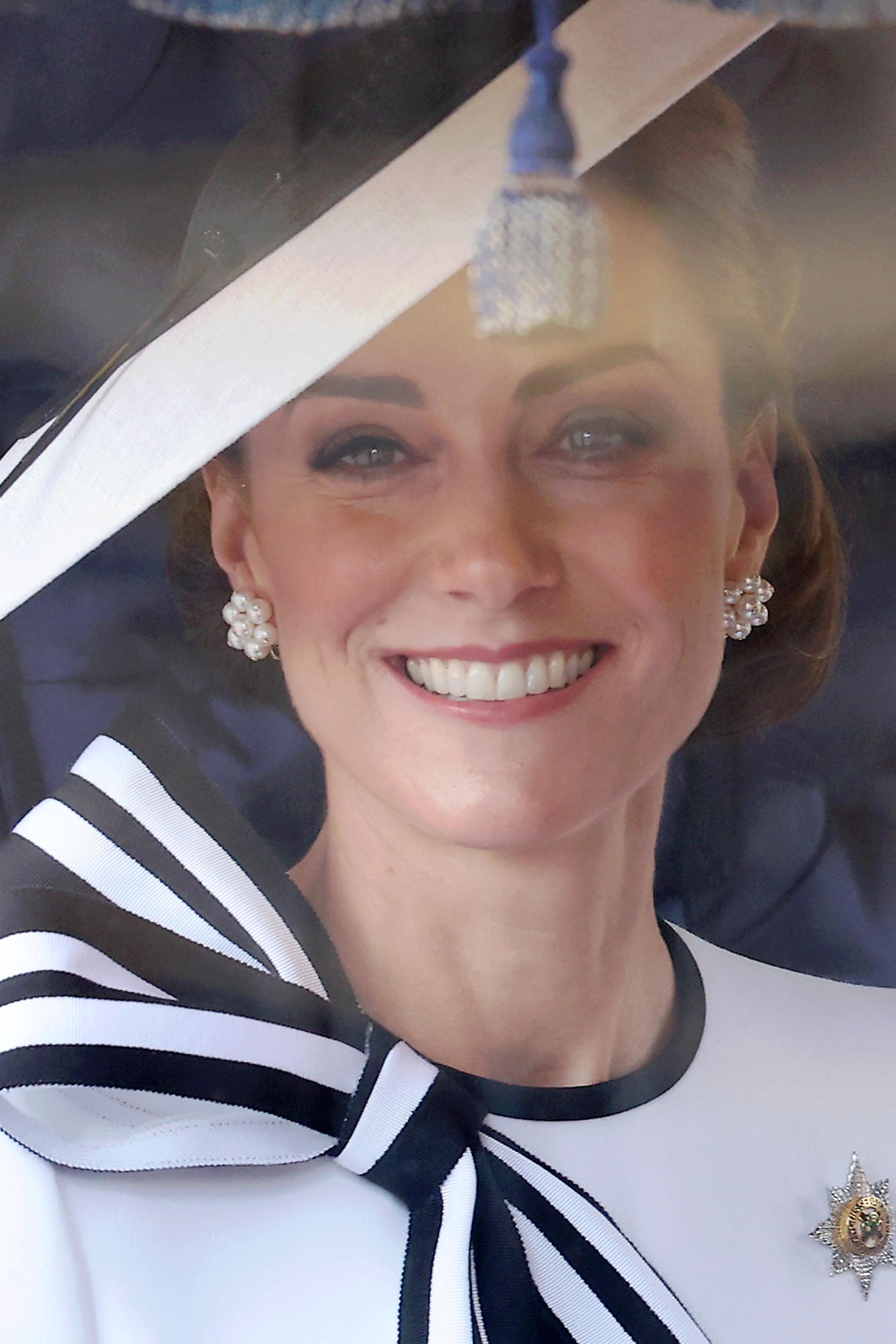 Позже принцесса была замечена в парадной карете в прекрасном расположении духа: та самая улыбка — на месте. К слову, выглядит Кейт просто прекрасно: шах и мат сторонникам всевозможных теорий заговора!