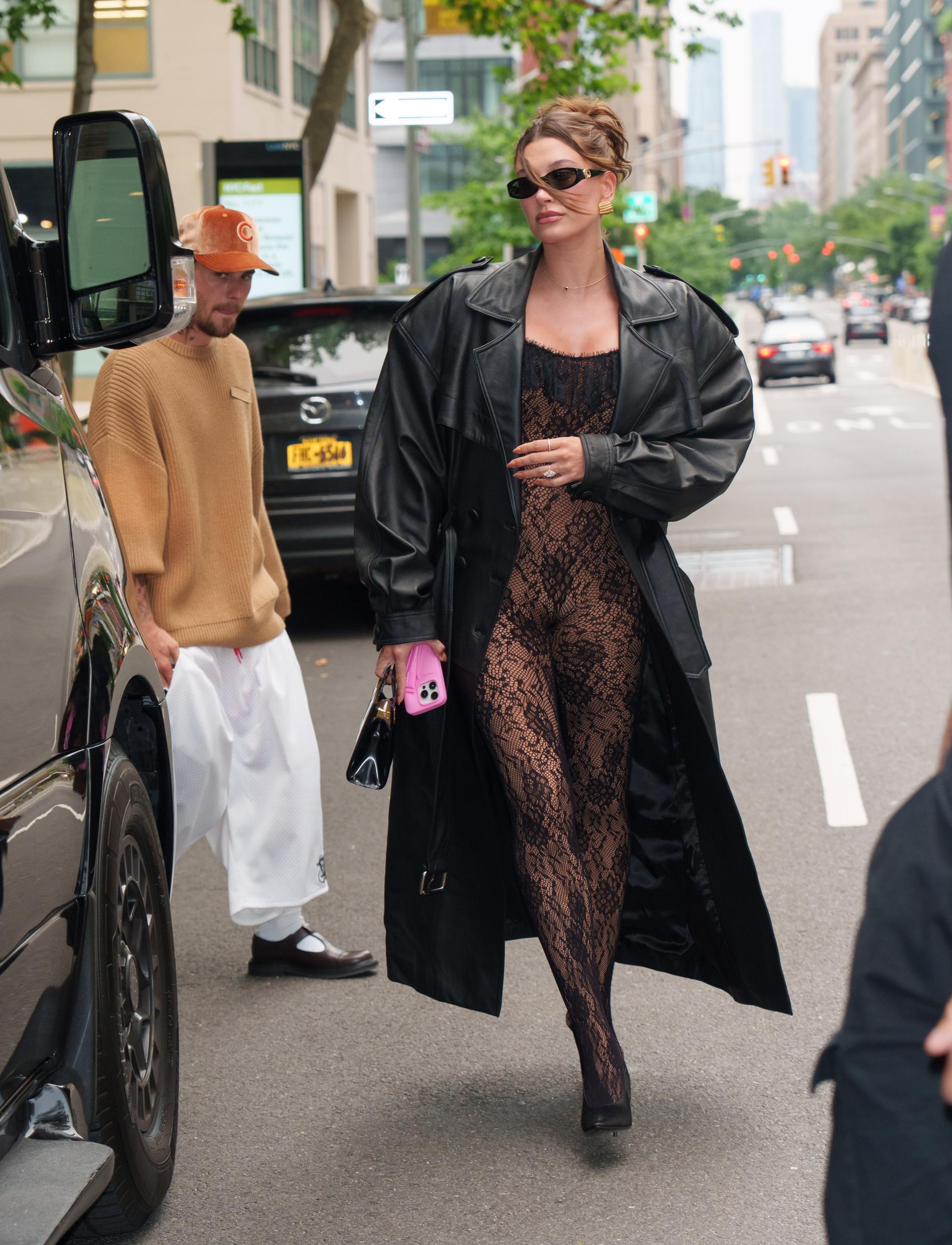 В минувшие выходные парочку застали на прогулке в Нью-Йорке. Семейный лук не состоялся и уже по традиции возлюбленные выглядели, что они не просто не вместе, но и вообще из разных миров: Хейли выбрала роскошный кружевной комбинезон черного цвета, подчеркивающий ее живот на седьмом месяце беременности, а Джастин... Ну, как обычно, в общем. Свежие снимки супругов, сделанные папарацци, вызвали массу возмущений в Сети.