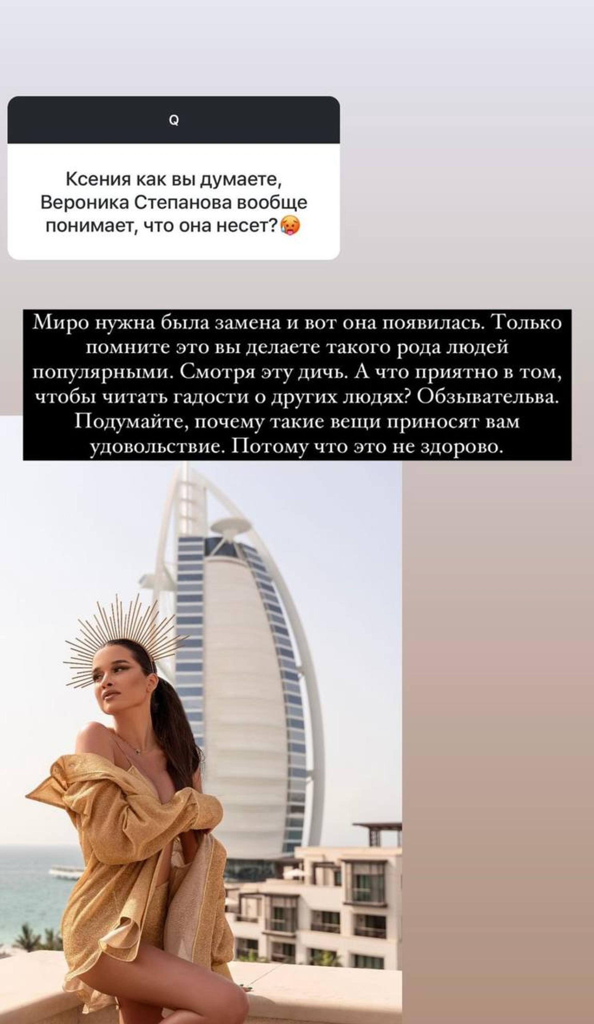 В своем инстаграме* телеведущая отметила, что Степанова — это замена покойной блогеру Лене Миро, известной едкими текстами о знаменитостях, и востребованной ее делают читатели. «Помните, что это вы делаете такого рода людей популярными, смотря эту дичь, — разразилась Ксения. — А что приятного в том, чтобы читать гадости о других людях? Подумайте, почему эти вещи приносят вам удовольствие. Потому что это нездорово».