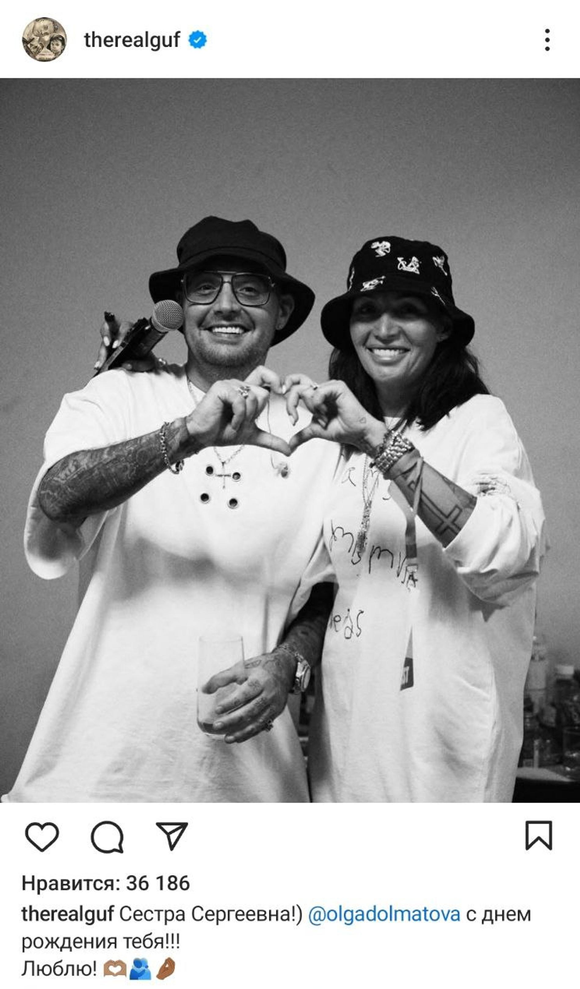Долматова решительно отвергла обвинения брата. Но было понятно, что после таких претензий отношения между родственниками испортились. И вот сегодня лед тронулся: Гуф неожиданно опубликовал в запрещенной соцсети совместное фото с Ольгой. «Сестра Сергеевна, с днем рождения тебя!!! Люблю!» — подписал рэпер трогательный кадр.