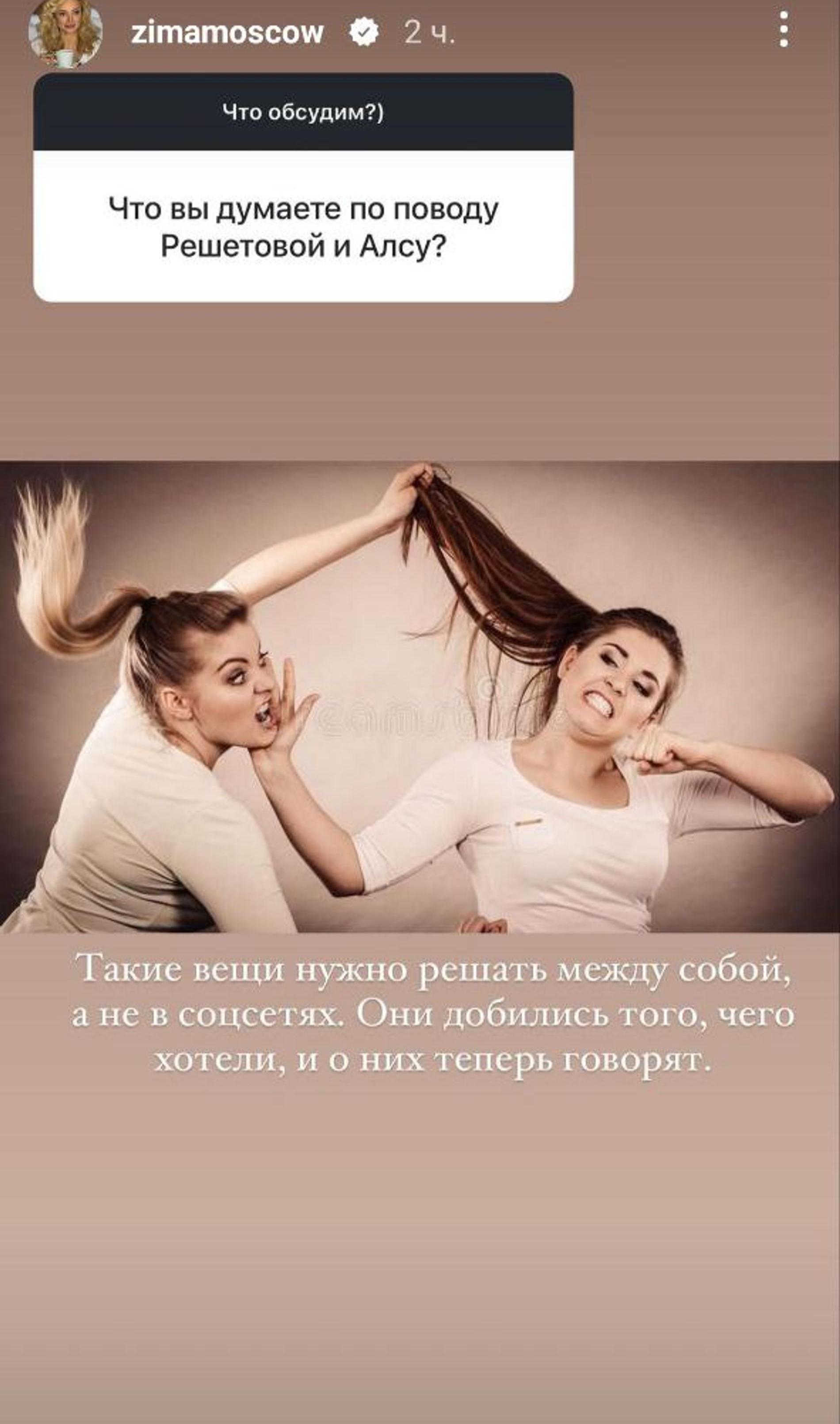 Накануне ее мнением на главную светскую тему лета поинтересовались подписчики в инстаграме*. «Что вы думаете по поводу Решетовой и Алсу?» — задали юной Валерии вопрос в директе. Девушка решила ответить публично. Получилось довольно провокационно. Валерия считает, что участницам конфликта не следовало выносить свои разбирательства на всеобщее обозрение и все выяснить исключительно друг с другом.