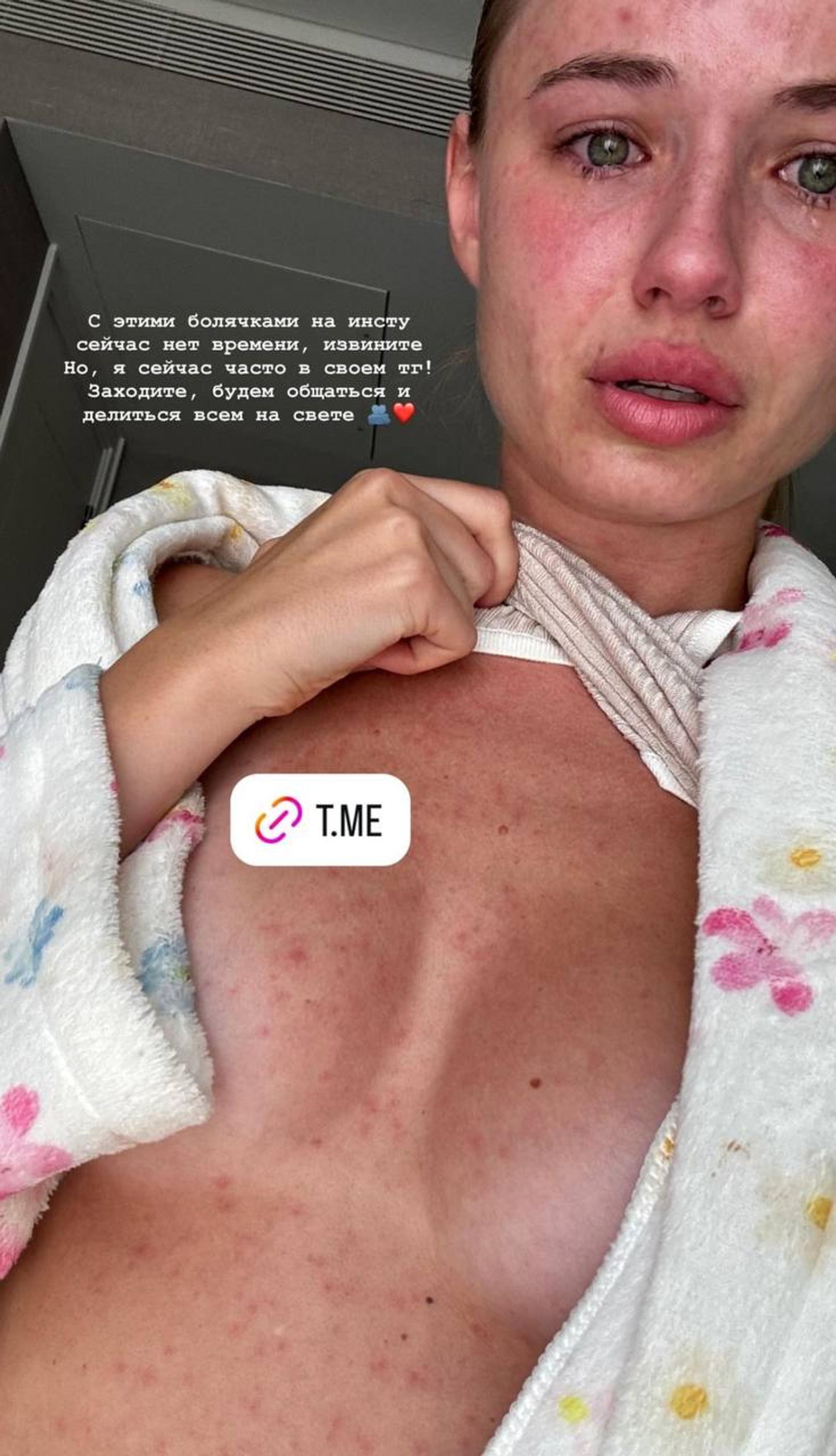 Что случилось с Лизой Василенко, артист не объяснил — его подписчики не стали вдаваться в подробности. А вот директ модели, судя по всему, атаковали ее фолловеры. Томить с подробностями девушка не стала и опубликовала кадр, на котором все ее тело покрыто пятнами, а лицо заплакано. Выглядит, признаться, жутко, а потому, что бы ни произошло, желаем Лизе побыстрее избавиться от недуга. Однако все равно заметим, что блогерша оставила ссылку на свой платный телеграм-канал, в котором, вероятно, раскрыла происхождение сыпи. Нехорошо по отношению к обеспокоенным поклонникам!