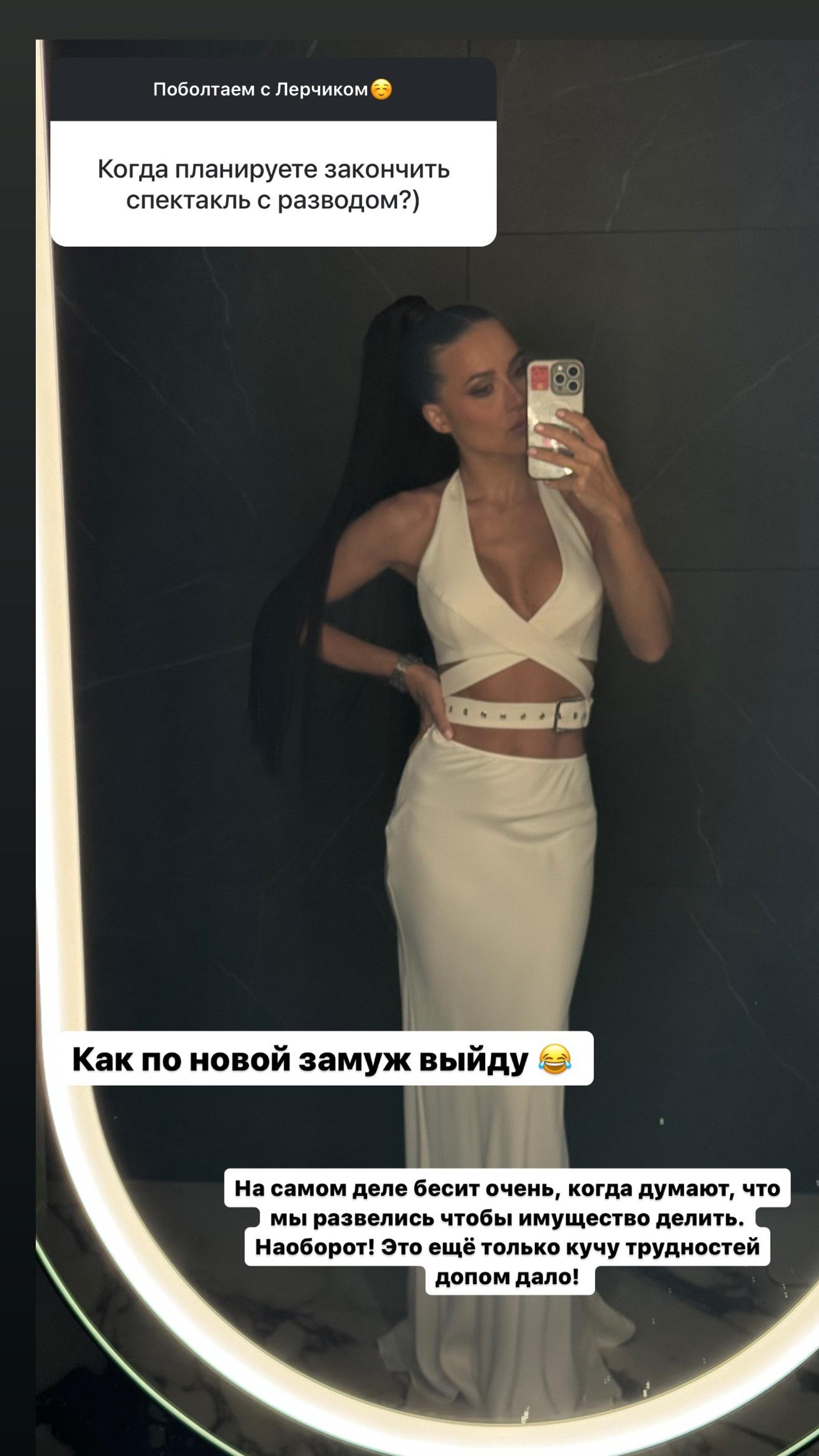 «Как по новой замуж выйду», — пошутила она в Инстаграме*. Но следом Лерчек выпалила: ее на самом-то деле злит, когда люди называют их расставание с Артемом постановочным или считают, что те развелись, «чтобы делить имущество», ведь процесс выдался непростым и подкинул обоим кучу трудностей.