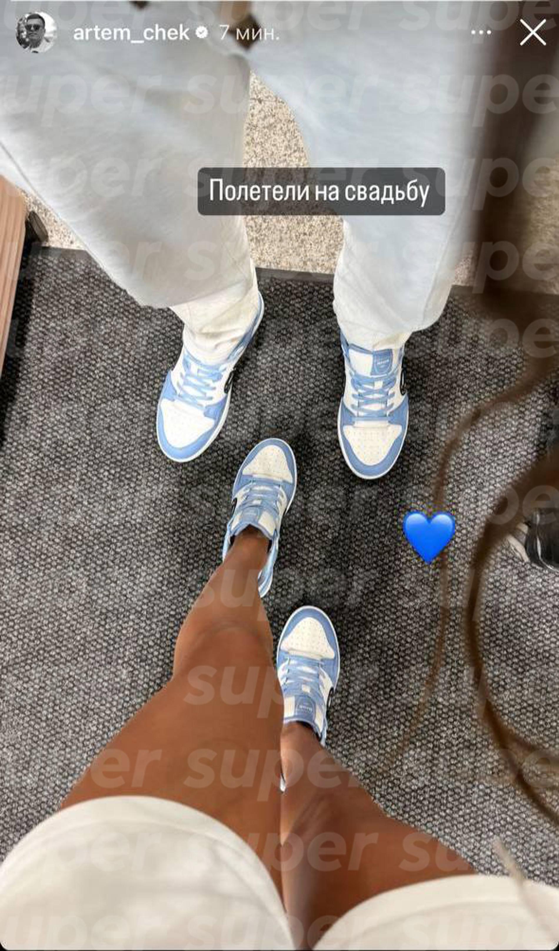 Перед посадкой в самолет Артем опубликовал в сторис говорящее фото мужских и женских ног в одинаковых кроссовках. «Полетели на свадьбу», — написал он и добавил эмодзи в виде сердца. Лица спутницы Чекалин в блоге так и не показал, а вот его друзья не осторожничали. В сторис попутчика пары Артема Левды свежеразведенный блогер и незнакомка мило держатся за руки, спускаясь по трапу.