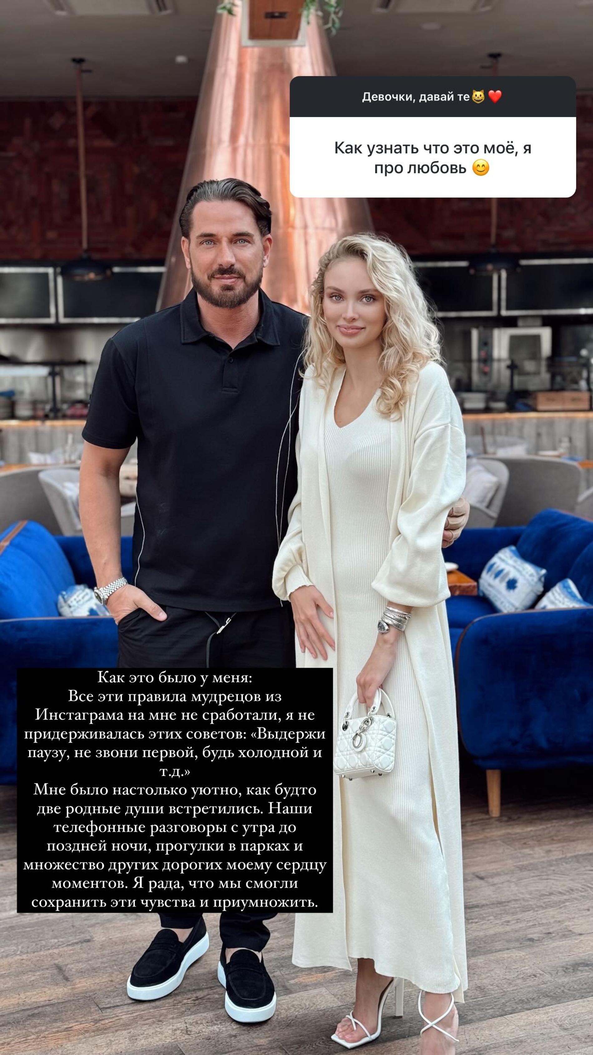 На вопрос подписчицы о том, как понять, что нашел «свое», Валерия раскрыла, что не особенно верит правилам и советам «мудрецов из Инстаграма*», а слушает сердце и собственные ощущения. «Мне было настолько уютно, как будто две родные души встретились. Наши телефонные разговоры с утра до поздней ночи, прогулки в парках и множество других дорогих моему сердцу моментов. Я рада, что мы смогли сохранить эти чувства и приумножить», — поделилась она.