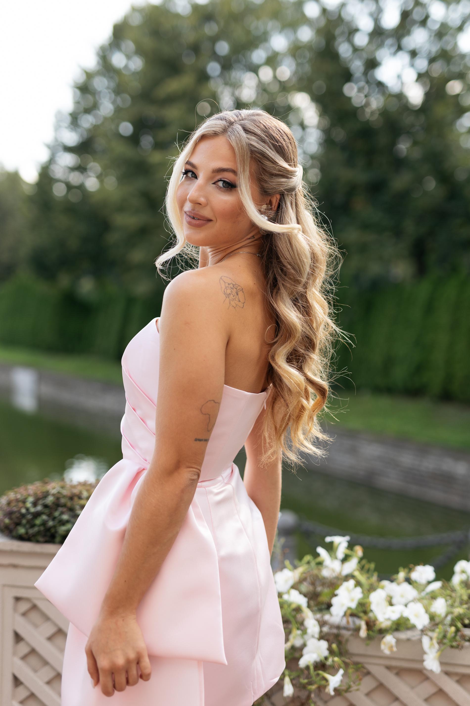 Позже Маша сменила свадебное платье на более простой и лаконичный наряд, в котором бросила букет невесты. За ним выстроилась целая очередь из свободных девушек, но победила в схватке Катя Голышева.