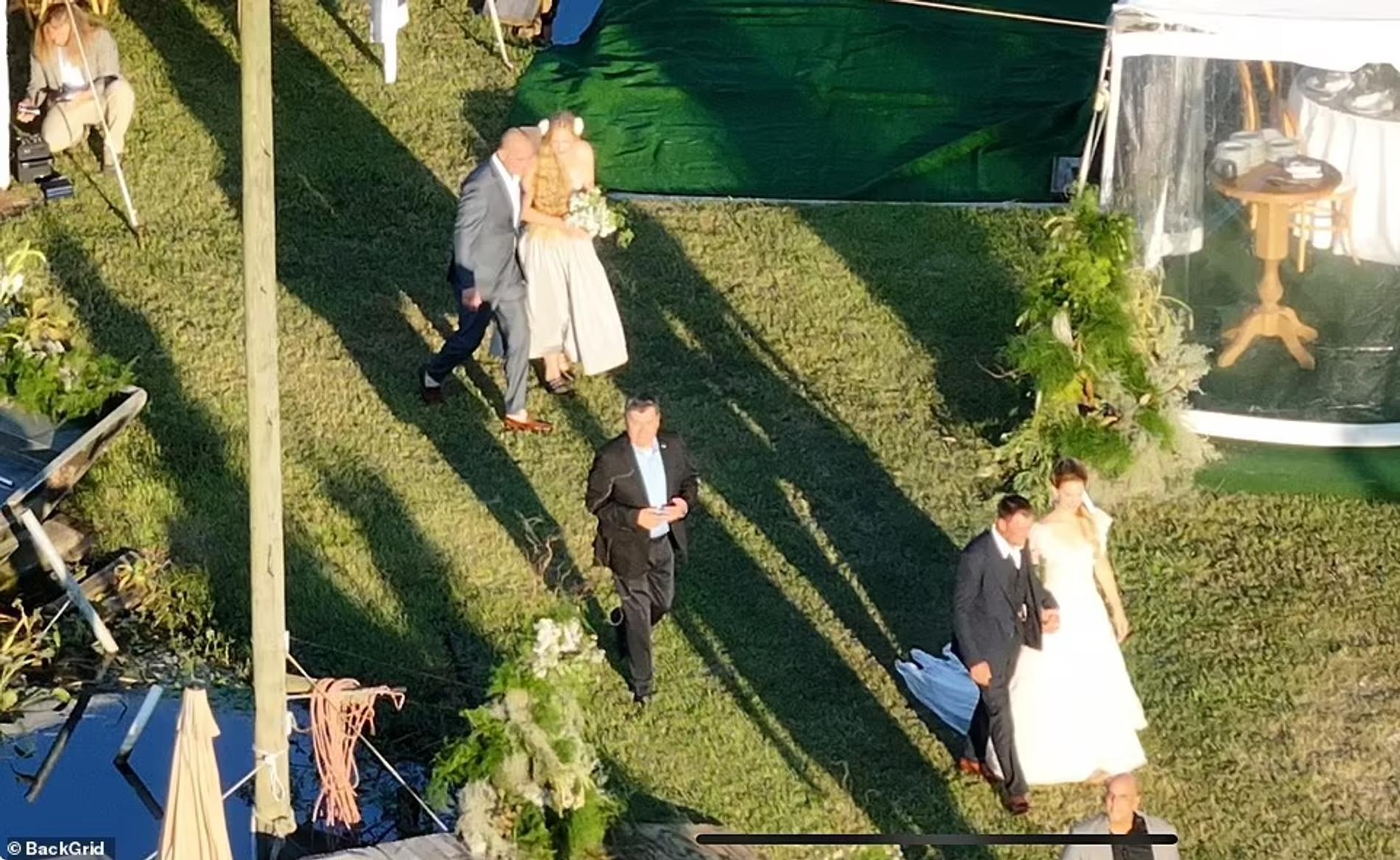 Папарацци удалось заснять несколько моментов торжества: идущую к алтарю в сопровождении отца певицу, а также ее вместе с возлюбленным.
