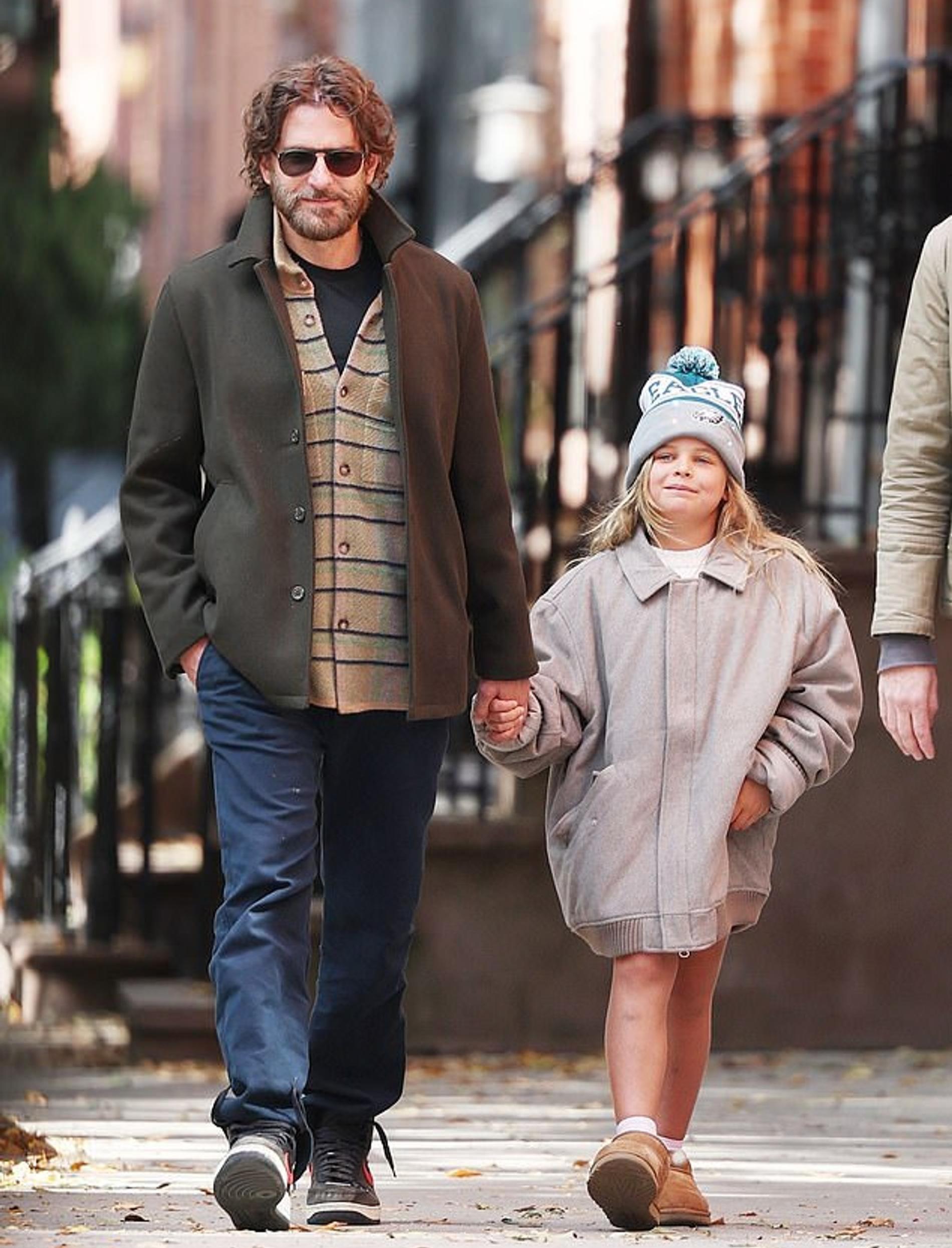 Пока возлюбленная Брэдли Купера Джиджи Хадид и его бывшая жена Ирина Шейк готовились к шоу Victoria's Secret, актер проводил время с дочкой в Нью-Йорке. Хотя их совместные прогулки регулярно попадают в объектив папарацци, в этот раз снимки стали поводом для обсуждения в Сети — все дело в необычном образе 7-летней Леи на кадрах, опубликованных Daily Mail. Куртка ей явно не подходит по размеру, как и шапка. К тому же, многим комментаторам показалось, что оголять ноги ребенка — не лучшее решение для осеннего образа. Мол, сам звездный отец одет гораздо теплее.