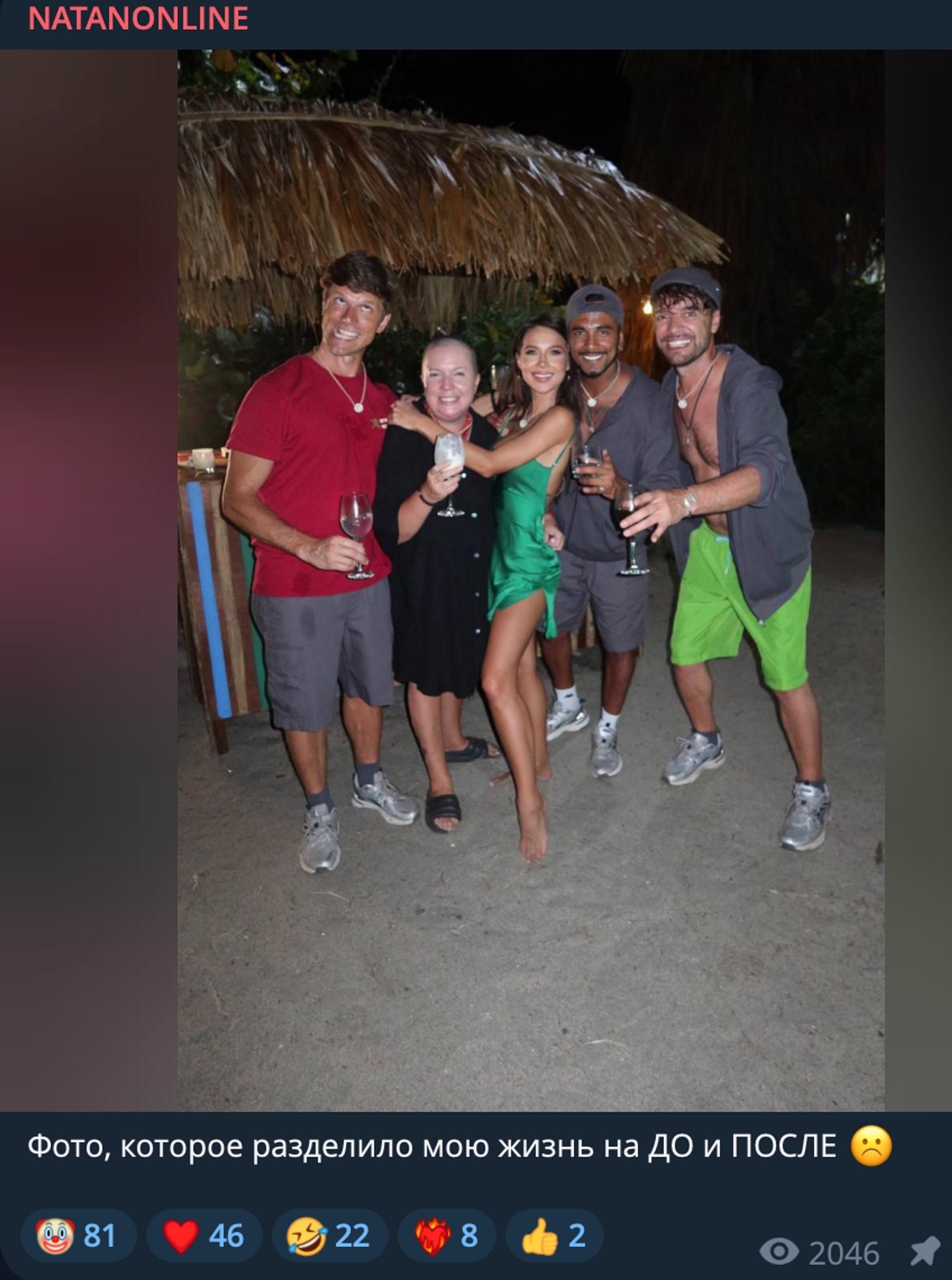 На снимке Natan в компании коллег по телепроекту и в том числе Лерчек веселится на явно алкогольной вечеринке, о чем свидетельствуют бокалы с напитками в их руках. Артист, популярнее которого прямо сейчас, кажется, нет никого в российском шоу-бизнесе, заявил, что именно этот снимок перевернул его жизнь. «Фото, которое разделило мою жизнь на до и после», — подписал фотокарточку Natan с раздосадованным эмодзи.