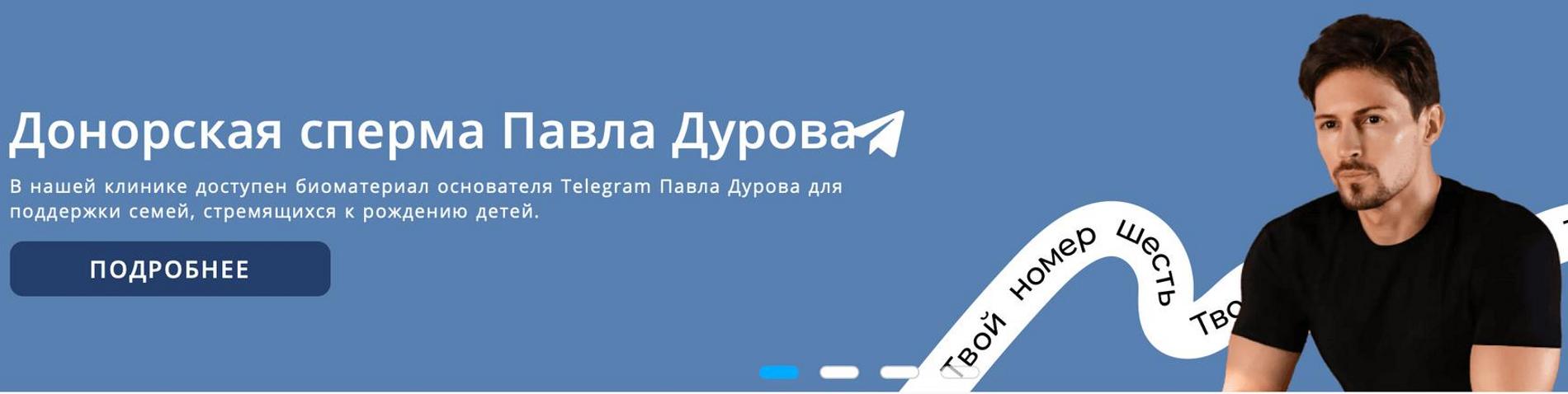 После того как Ирина Болгар начала свой крестовый поход против Павла Дурова, основатель Telegram сделал неожиданное признание: у него более ста детей по всему миру. Похоже, немало наследников миллиардера и на родине. Одна из московских клиник предлагает услугу ЭКО донорским биоматериалом Дурова. Первым на это обратил внимание журналист Никита Могутин — Super тоже посетил сайт медучреждения и своими глазами убедился в наличии такого необычного предложения.