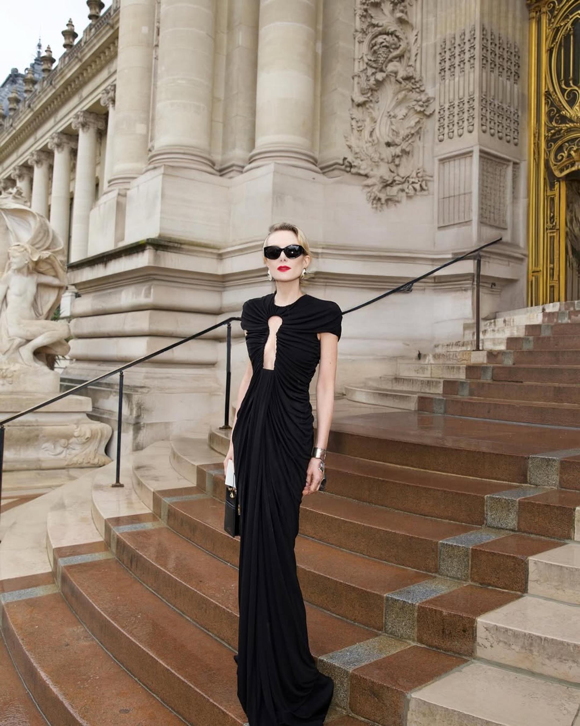 Звезда отдала предпочтение классике, которой не изменяет уже много лет. Тотал-блэк образ подчеркнули массивные аксессуары — серьги и браслет, а также алая помада, давно ставшая фишкой Литвиновой. Чёрное платье в пол от Schiaparelli подчеркнуло точёную фигуру знаменитости — в комментариях отмечают, что она выглядит гораздо моложе своего возраста.