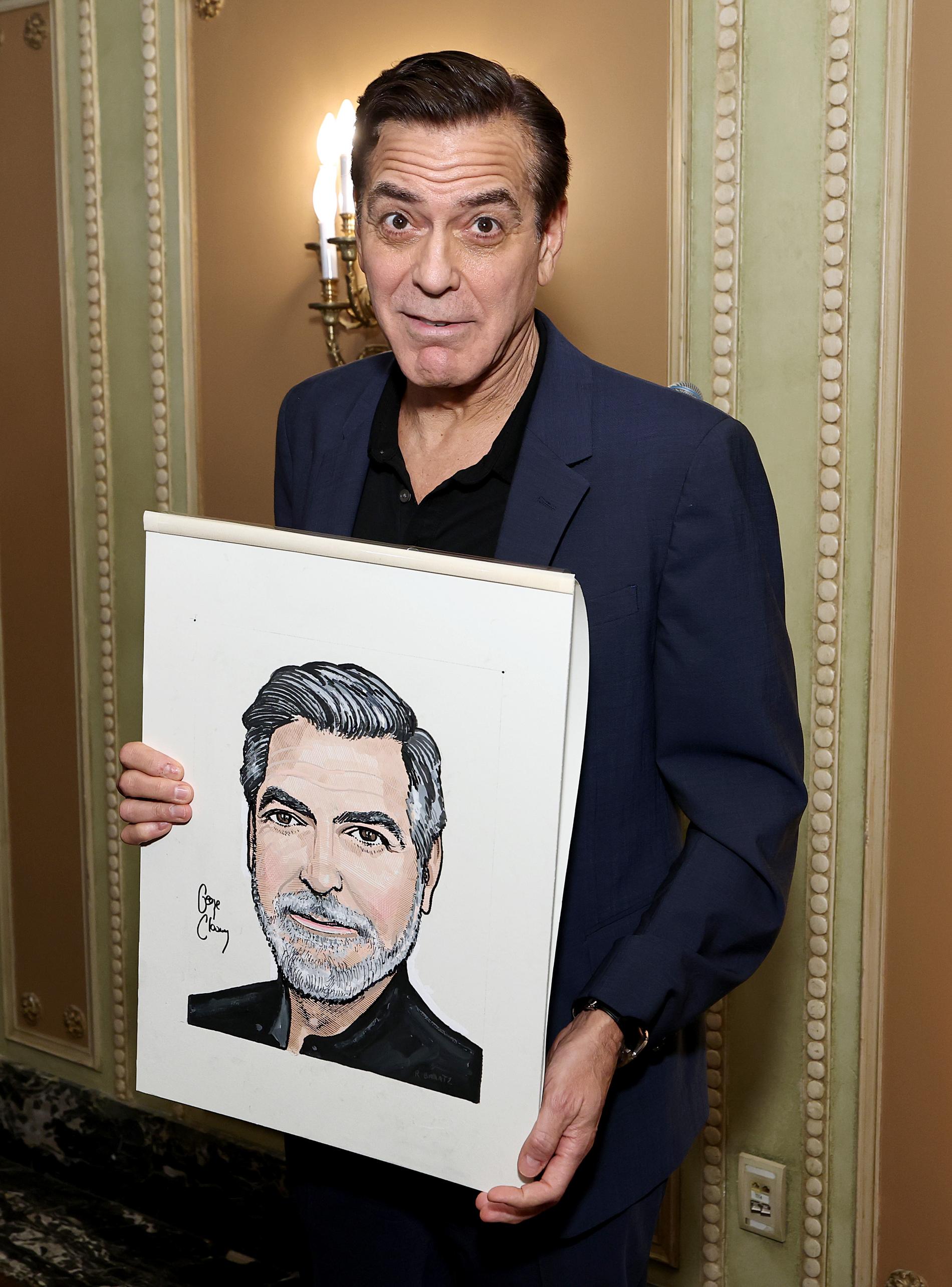 Звезде вручили портрет, на котором он седой. Комментарий Клуни повеселил прессу и гостей мероприятия. «Мне нравится этот цвет волос. Намного лучше, чем мой нынешний цвет. Лучше, когда он больше серого оттенка», — выдал актёр.