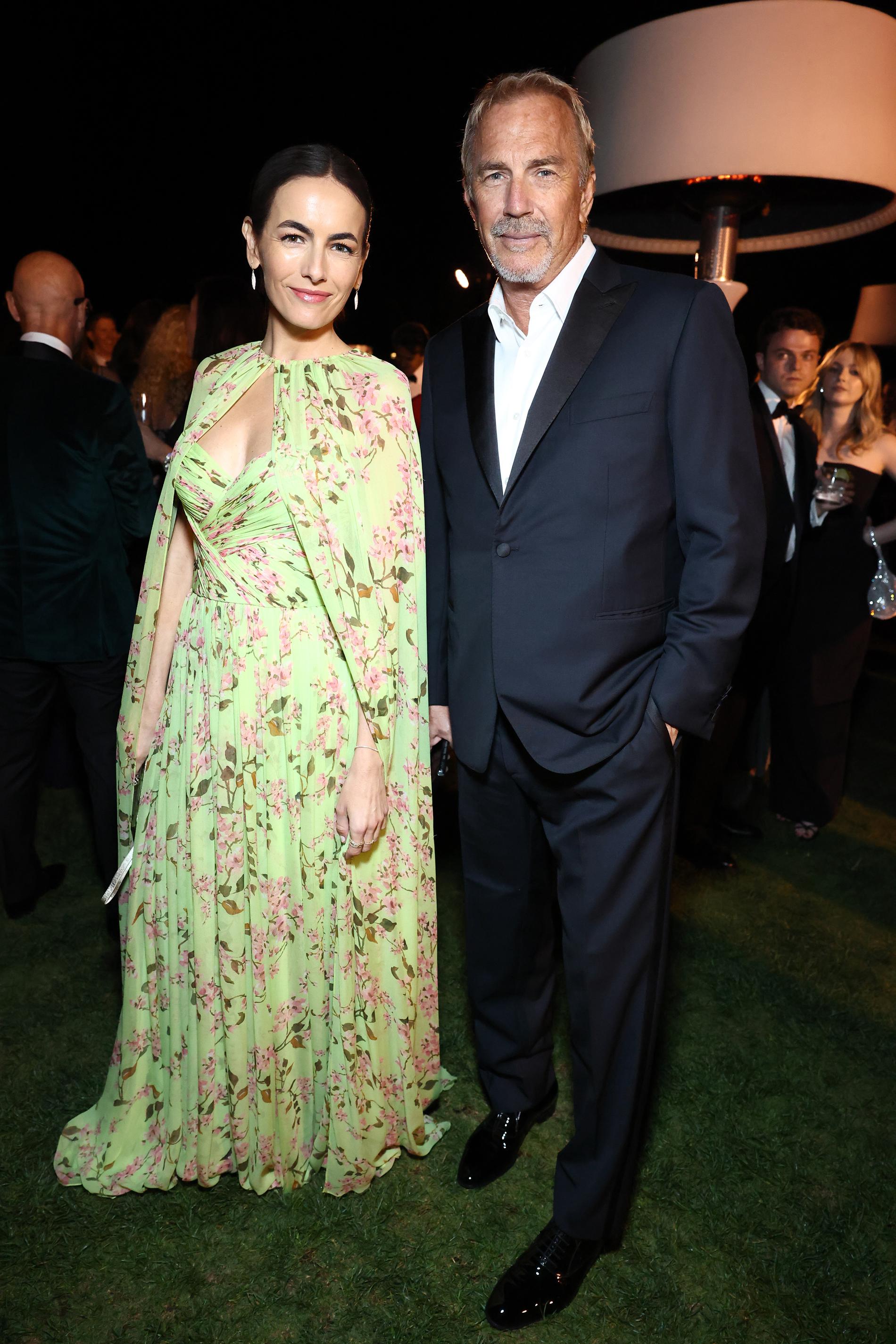 Спутницей Костнера оказалась 39-летняя актриса Камилла Белль. На ней было бледно-мятное платье с глубоким вырезом и цветочным принтом. Образ дополнила накидка в тон. Актриса малоизвестна широкому зрителю, однако она — отнюдь не новичок в кинобизнесе.