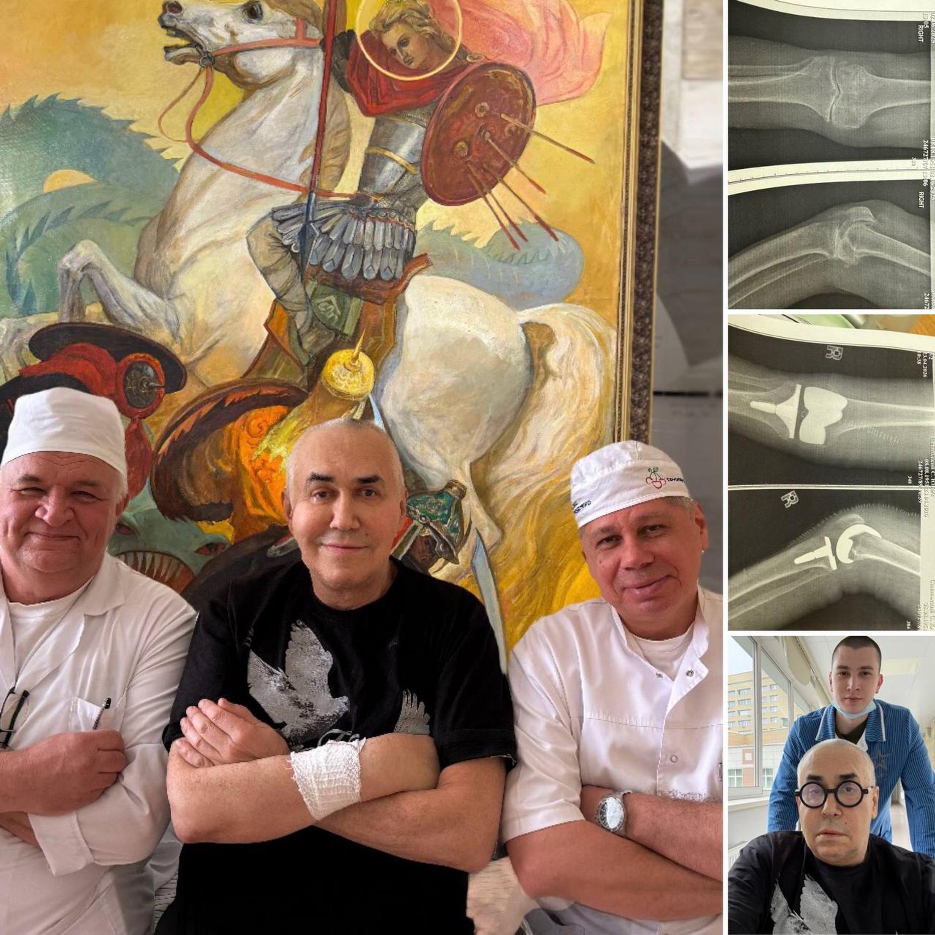 «У меня огромная радость: уже не ползаю по сцене и странно не хожу. Робот из госпиталя им. Вишневского с „глазами“ выполнил протезирование коленного сустава на отлично! Офигительные врачи‑хирурги задавали команды, которые мгновенно исполнялись», — поделился впечатлениями артист.