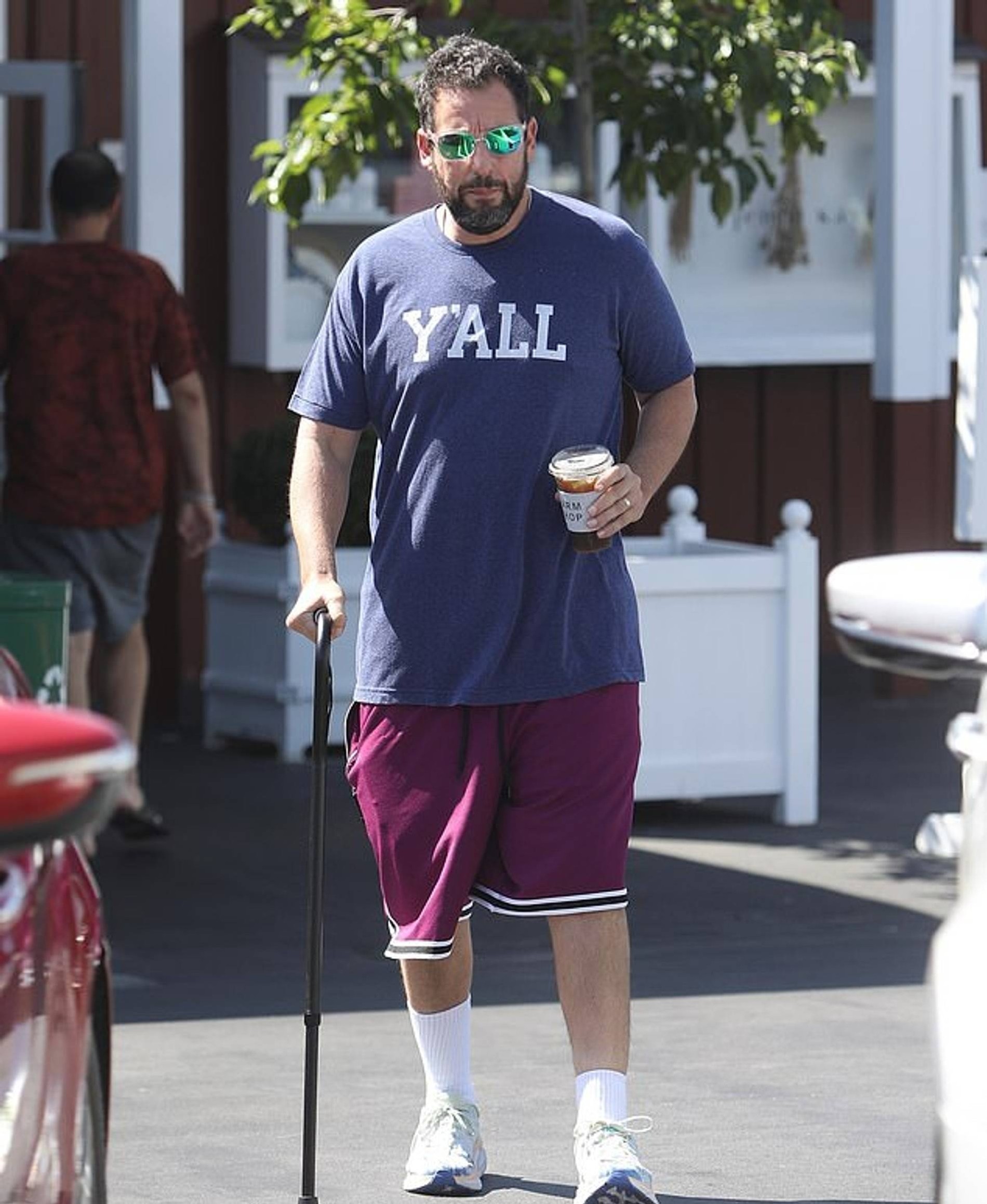 На свежих кадрах Адам идет с тростью и с трудом наступает на ногу. Многие подумали, что у Сэндлера какая-то травма, но никаких новостей или сообщений от самого актера на было.