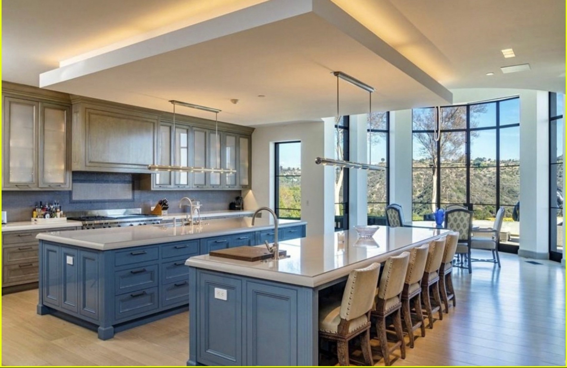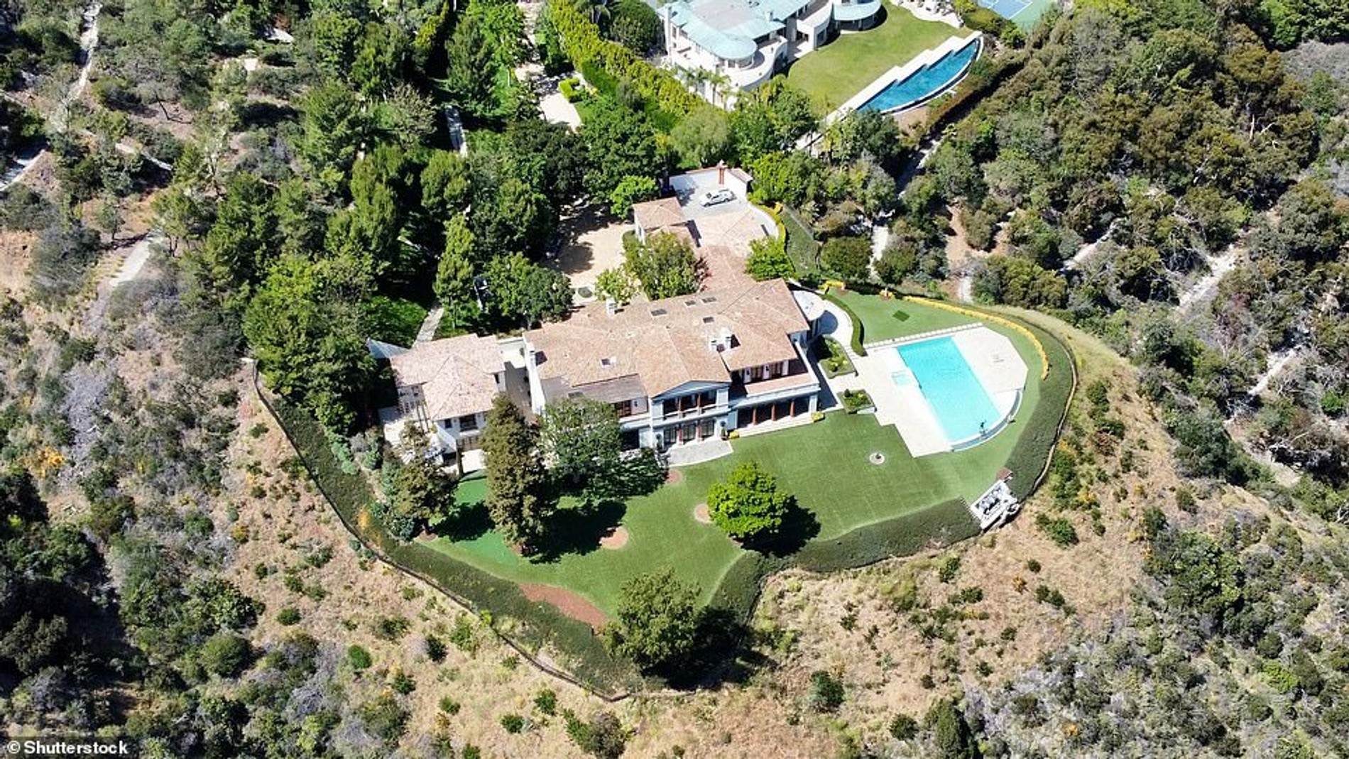 На территории также есть двухэтажный гостевой дом с двумя спальнями и оборудованной кухней для шеф-повара. На новом участке пары расположился собственный видовой бассейн, спа-салон и гараж на 8 машин.