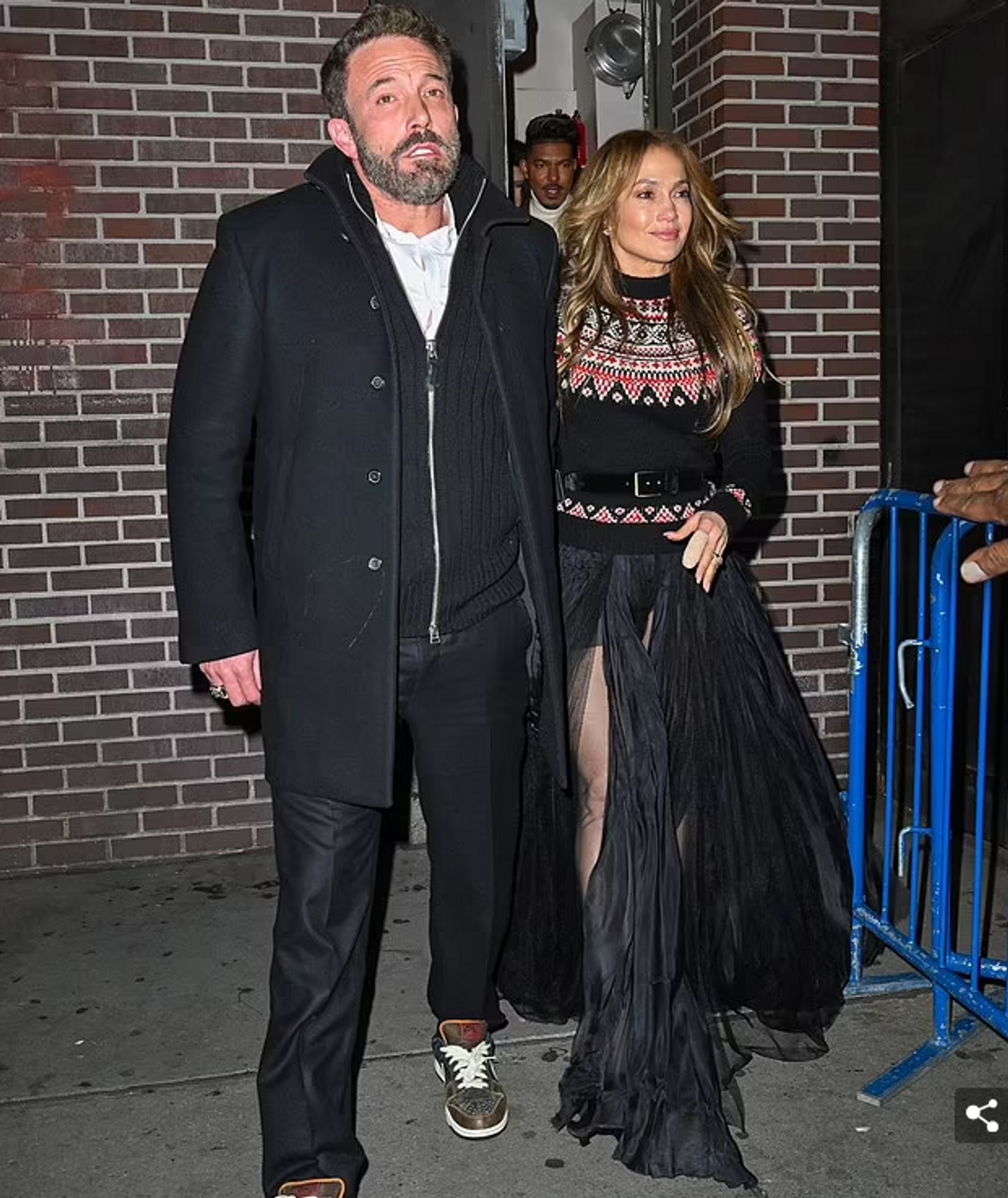 Папарацци запечатлели Дженнифер и Бена, романтично держащихся за руки по пути к машине. Актер утеплился основательно — сразу видно, зима! А блистательной спутнице холода, похоже, нипочем. Дженнифер в юбке из легкой ткани и с длинным разрезом выглядела так, будто захватила с собой дежурный рождественский свитер на случай похолодания.