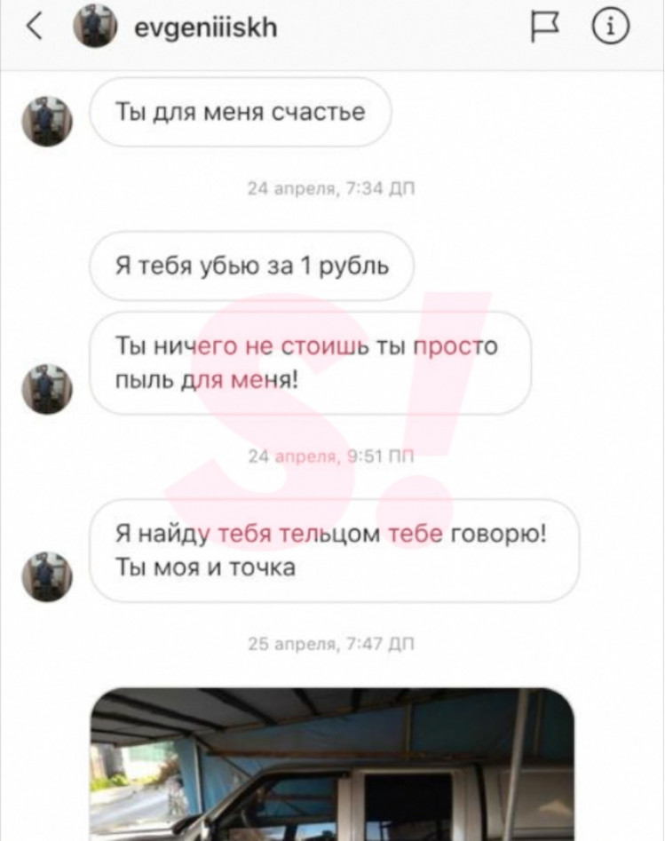 — Не угадаешь, что в голове у таких людей — он может быть просто психом, а может и правда придет к дому и подкараулит. У меня маленький сын, мы живем одни, и я действительно в последнее время не чувствую себя в безопасности. Надеюсь наша полиция быстро вычислит личность этого человека и накажет его, — прокомментировала Водонаева происходящее SUPER.