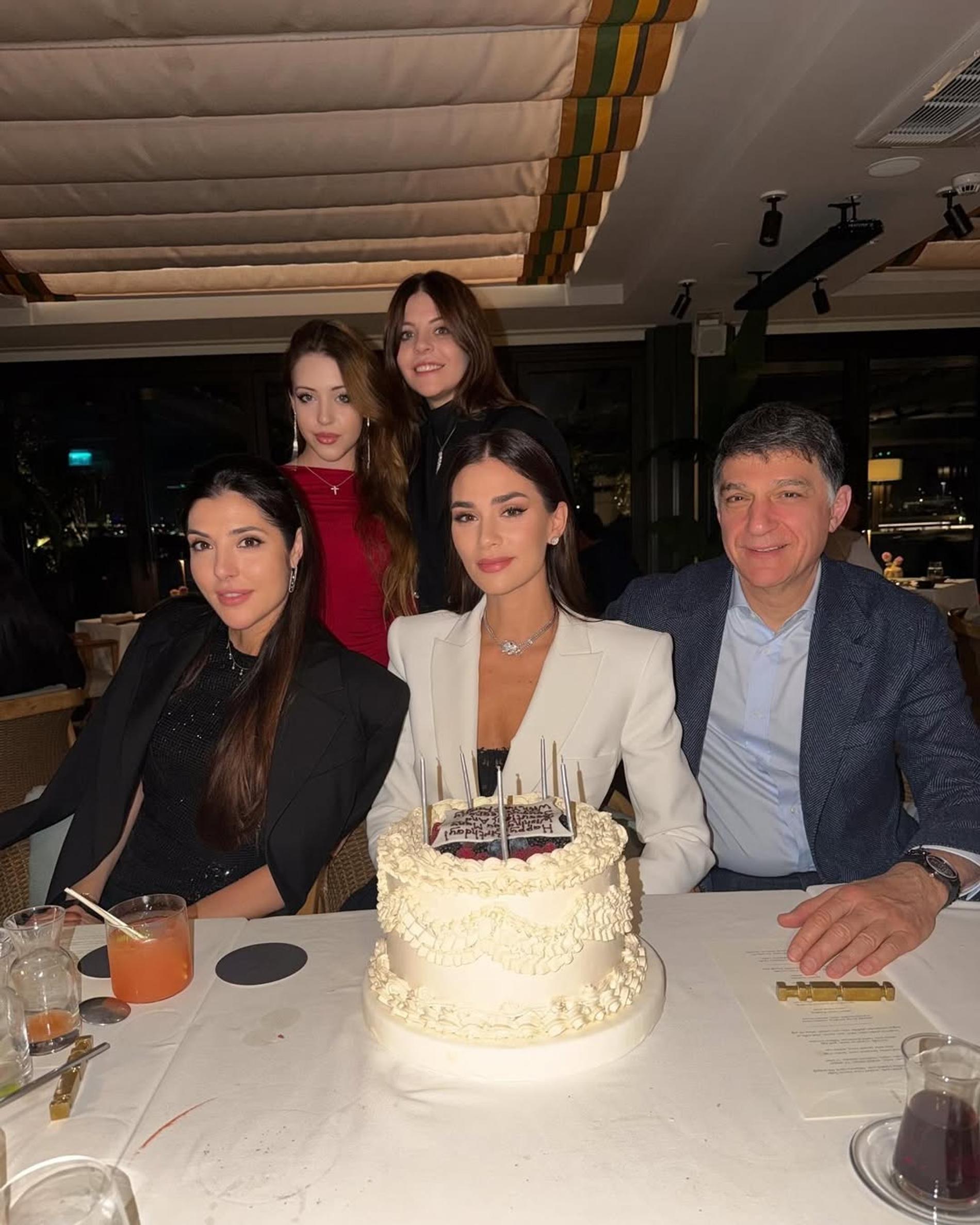 В один из вечеров семья собралась за праздничным ужином, чтобы поздравить Анастасию с днём рождения. Для торжества именинница выбрала эффектный образ: белоснежное короткое платье-пиджак, чёрное бра и бриллиантовые украшения. Праздничные кадры она опубликовала в Инстаграме (запрещён в РФ).
