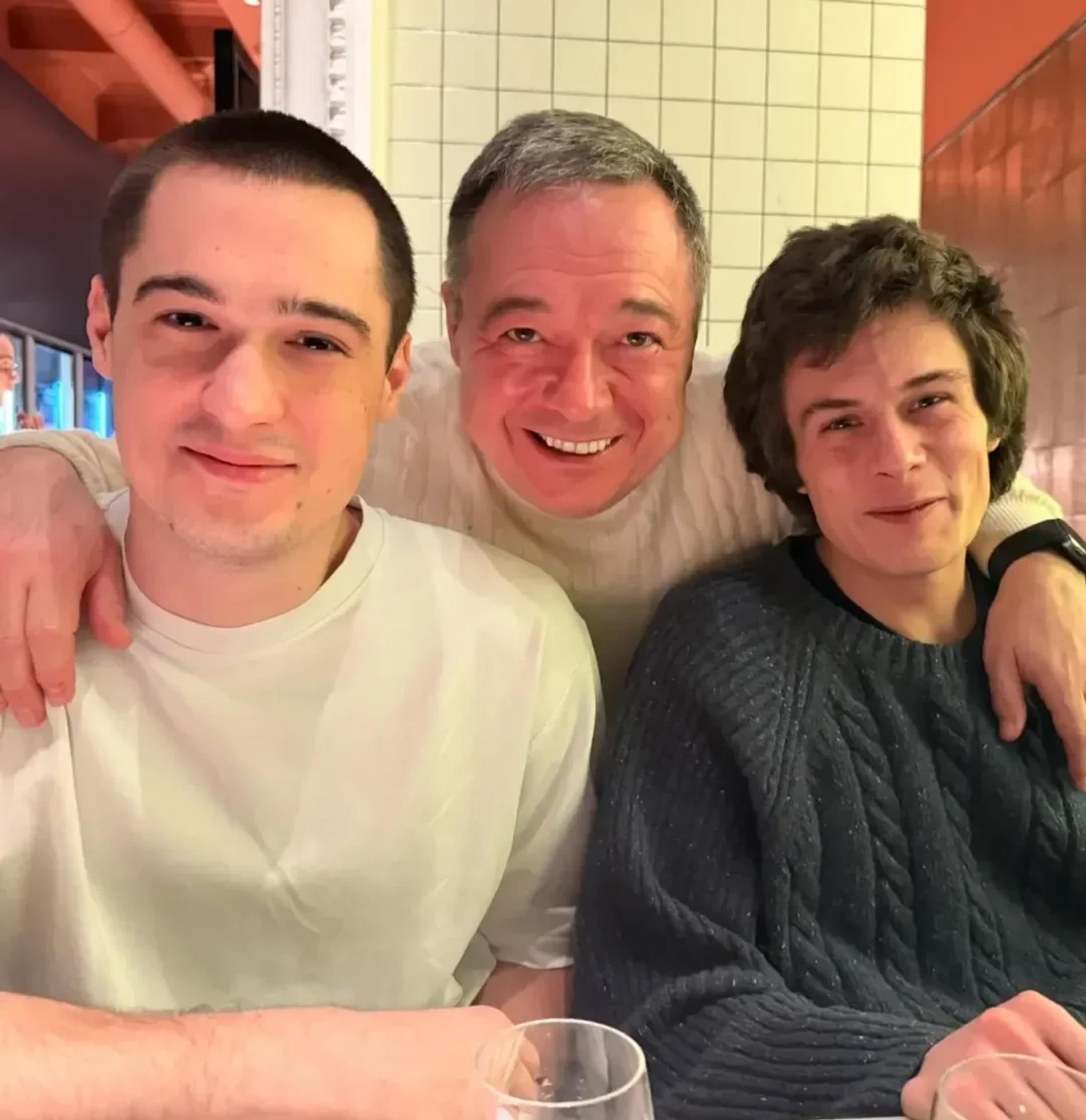 Анна Михалкова показала редкое фото мужа и сыновей. В личном блоге в запрещённой соцсети актриса опубликовала совместный снимок наследников с их отцом, супругом артистки Альбертом Баковым. На снимке все трое радостно улыбались. Баковы — Андрей, Сергей и их папа — запечатлены, судя по всему, в ресторане.