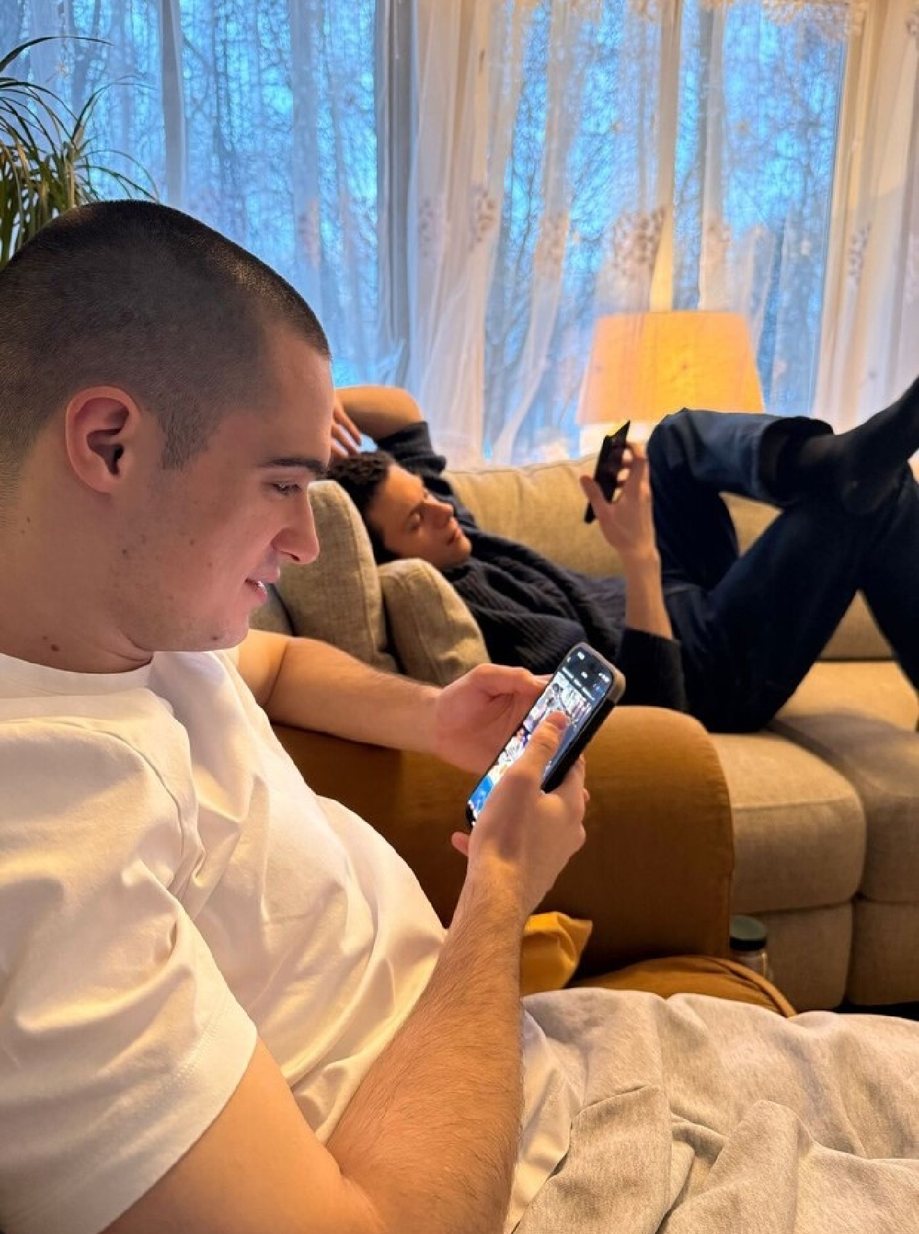 На снимке запечатлены 25-летний Андрей и 24-летний Сергей во время визита к матери. «Зашли дети пообщаться», — с юмором подписала фотографию Михалкова, намекая на то, что молодые люди были больше увлечены своими смартфонами, чем общением с мамой.
