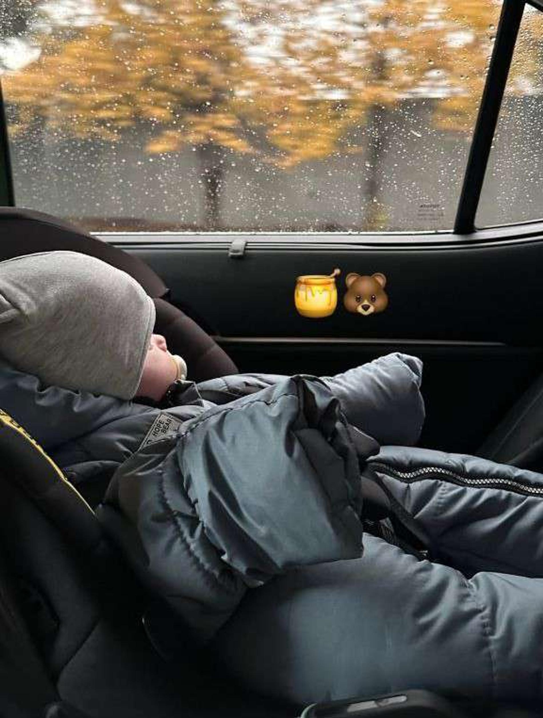 На свежем кадре, опубликованном в соцсетях, запечатлён малыш Марсель. Мальчик уютно устроился в автокресле, одет в теплый комбинизон и серую шапочку. За окном видно осенние деревья с жёлтыми листьями и капли дождя на стекле – атмосфера уюта.