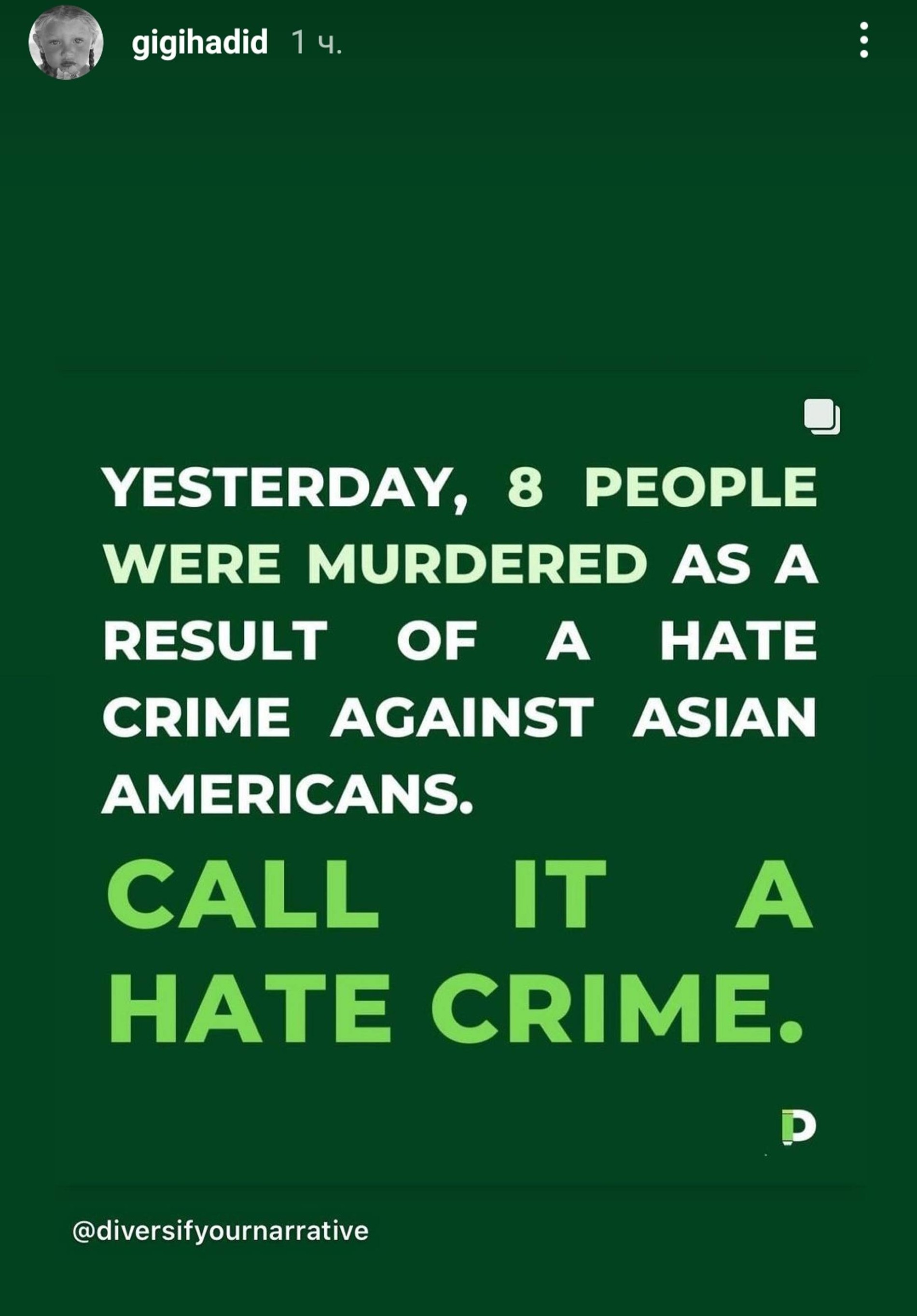 На жестокие убийства отреагировали не только СМИ и медиа, но и звезды, которые обратили внимание на ужасные проявления расизма к азиатам в США, а также призвали власти страны разобраться с нападениями. Среди тех, кто опубликовал посты о жертвах насилия и ненависти, стали модель Джиджи Хадид, звезда «Игры престолов» Софи Тернер, актриса Флоренс Пью и многие другие селебрити.