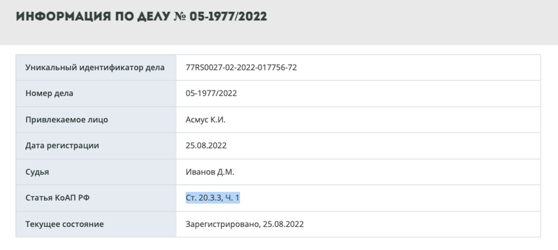 Утро добрым не бывает: согласно информации, опубликованной в картотеке Тверского суда, на Кристину Асмус составили протокол о дискредитации российской армии. Ей грозит штраф от 30 до 50 тысяч рублей.