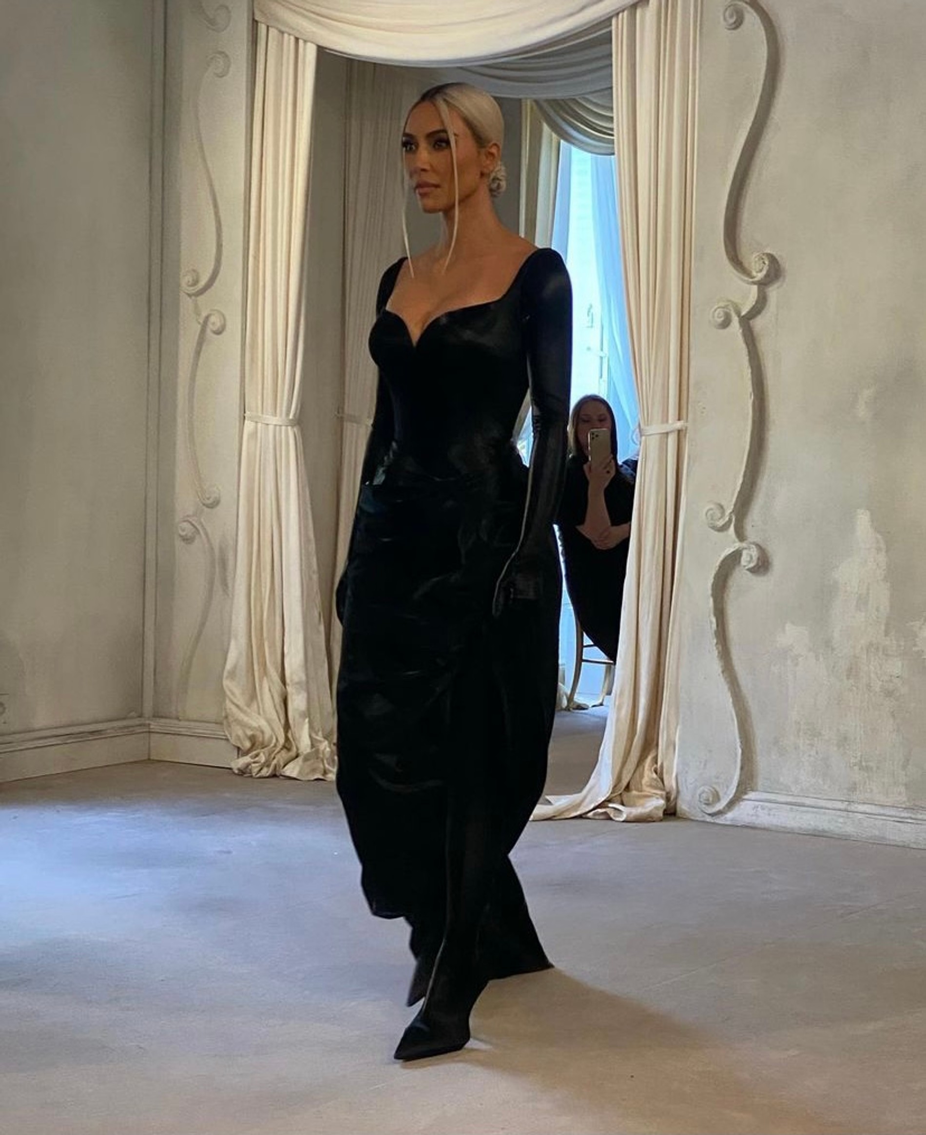 Давняя поклонница Balenciaga Ким Кардашьян явила свету черное обтягивающее платье, а с первых рядов инфлюенсера поддерживали мама Крис Дженнер и старшая дочь Норт Уэст — подрастающий трендсеттер, кстати, тоже обожает Balenciaga.