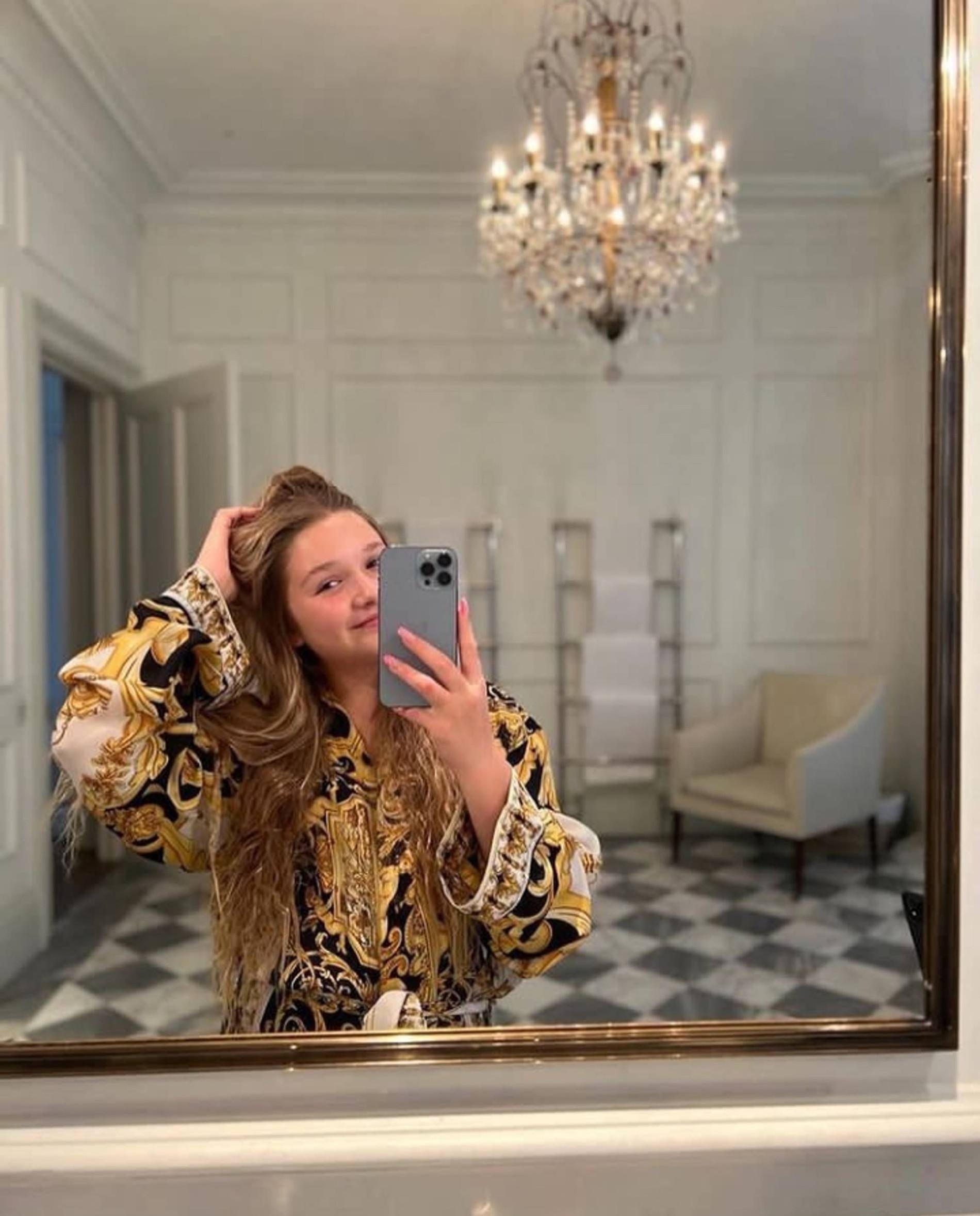 «Я не знаю у кого она это берет», — так шутливо гордая мама подписала фотографии, на которых Харпер позирует в шелковом халате Versace. И сама же дала ответ, выложив селфи в точно таком же халате. Многие комментаторы обратили внимание на нарощенные ногти, мол, не по возрасту они 11-летней девочке. Но, как мы знаем, фэшн-полиция уже давно разрешает самовыражаться так, как душе угодно, поэтому нам в образе Харпер нравится решительно все!