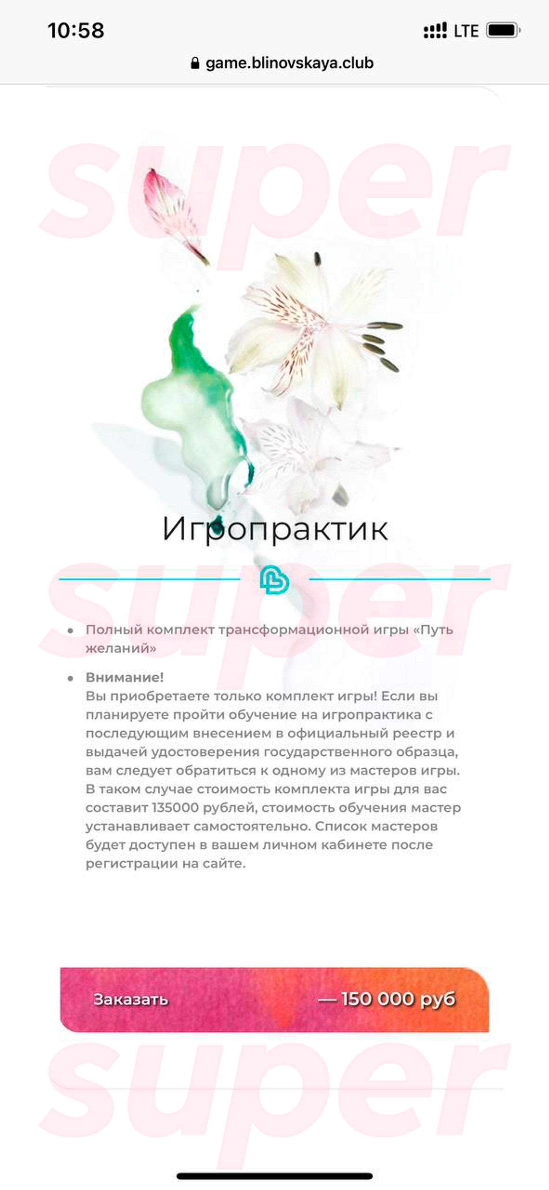 Один комплект игры — коробка с картой и фишками — стоит 150 тысяч рублей. Чтобы научиться проводить игру, нужно заплатить «мастеру», который станет вашим коучем. Средний «мастер» в «реестре» Блиновской берет за обучение 50 000 рублей. Поиграть в заветную игру тоже нельзя бесплатно: для этого на сайте Елены нужно записаться на игру к какому-нибудь «игропрактику», это стоит в среднем 3000 рублей.